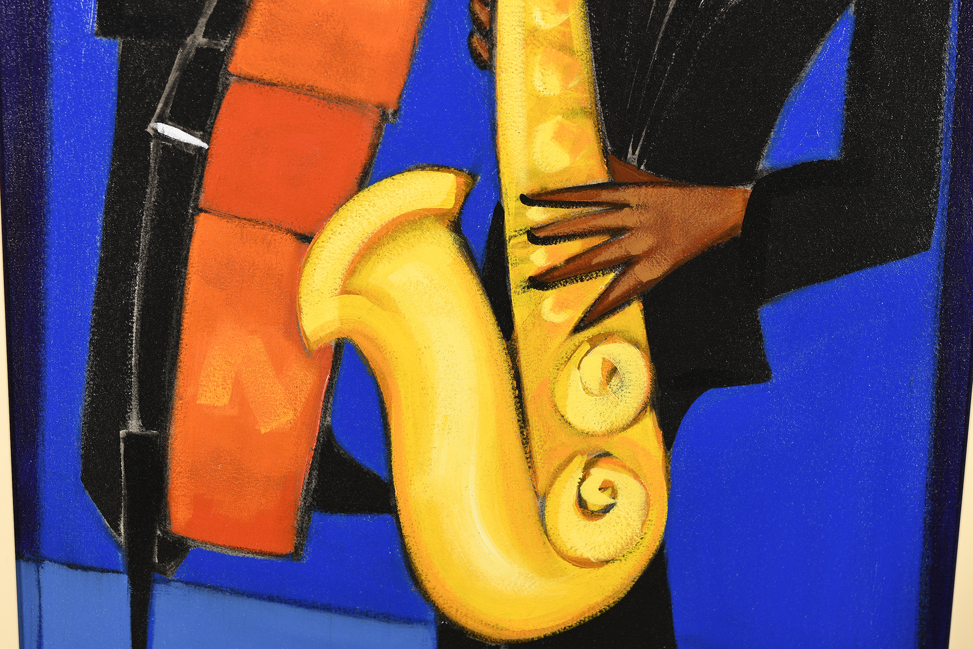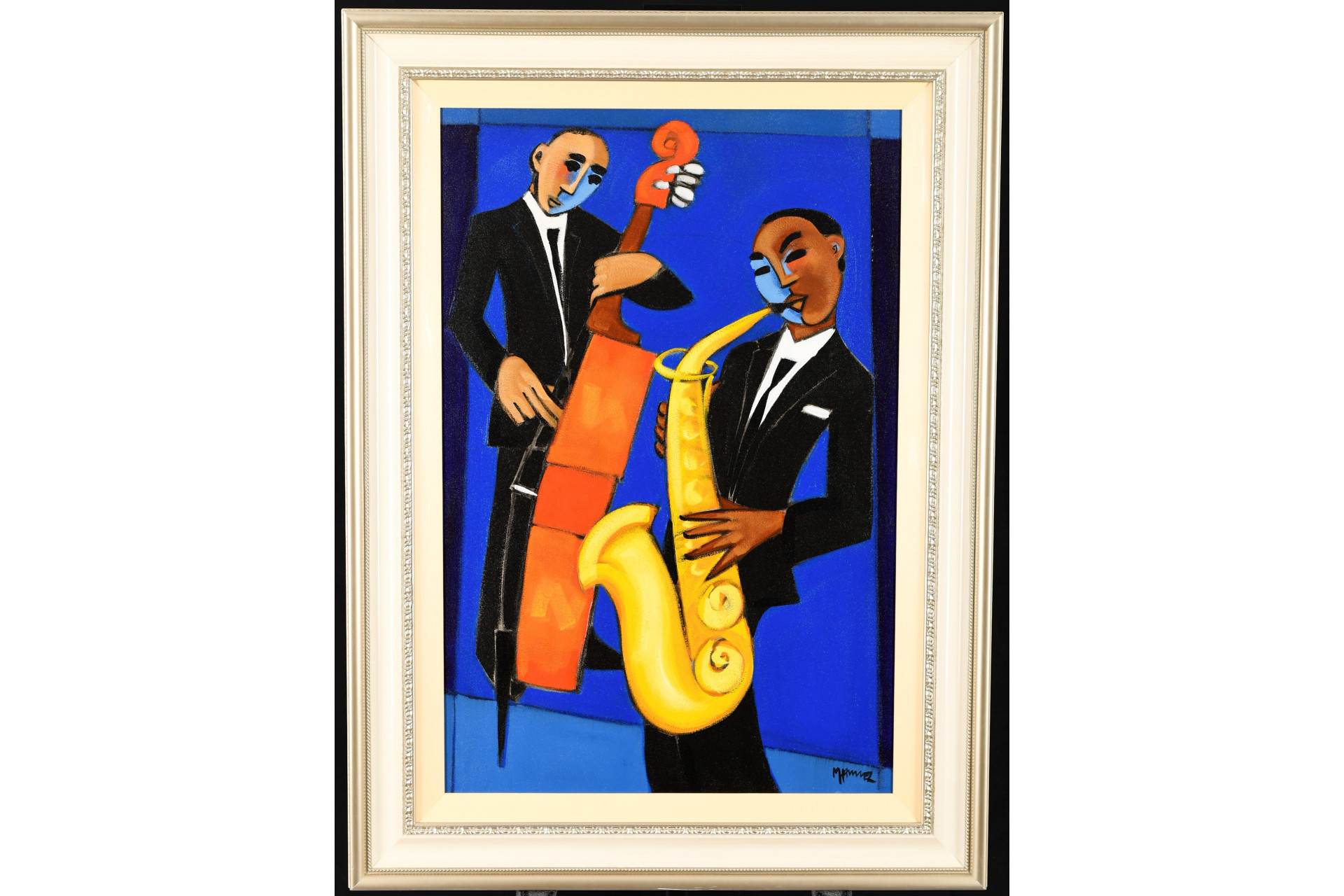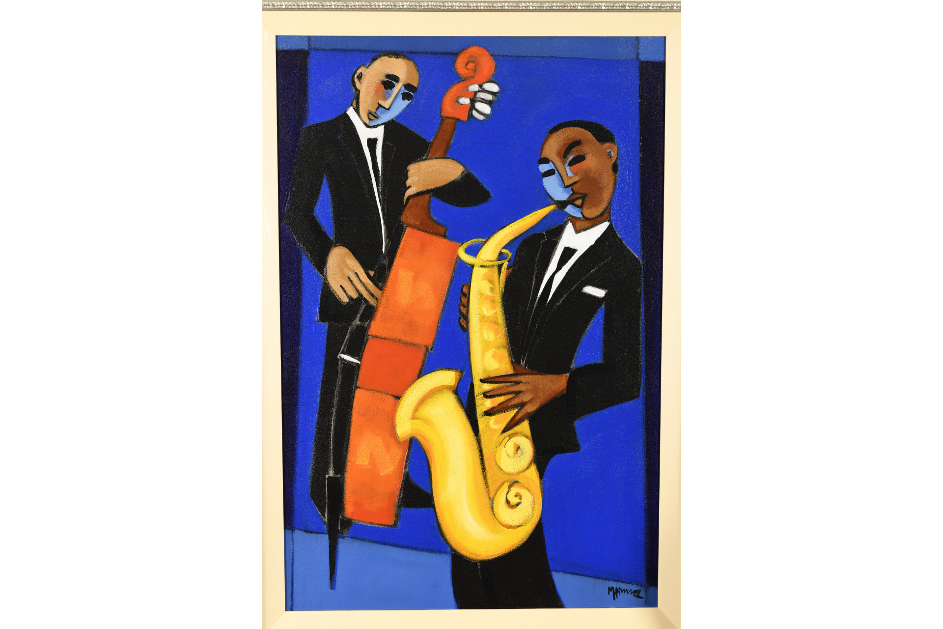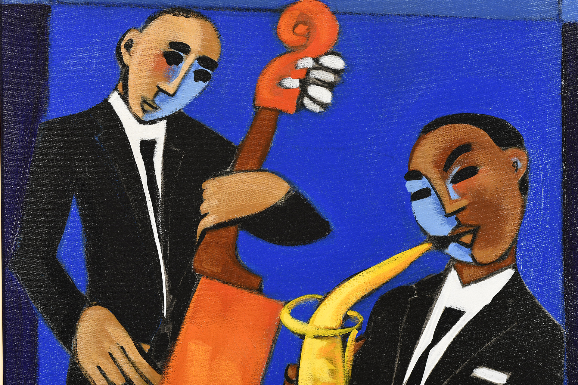 - Marsha Hammel Oil on Canvas "Indigo Jazz - Bass & Sax"