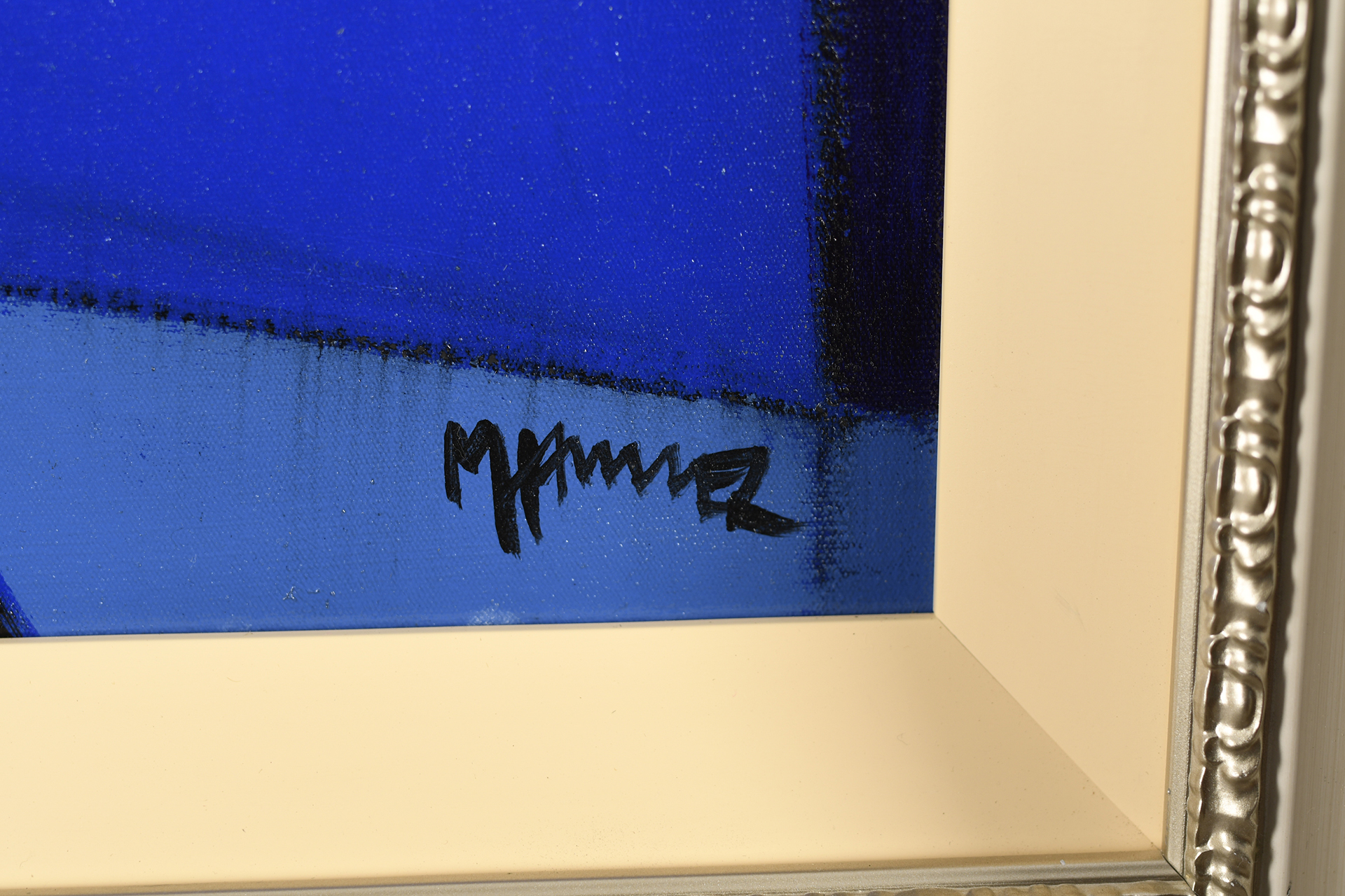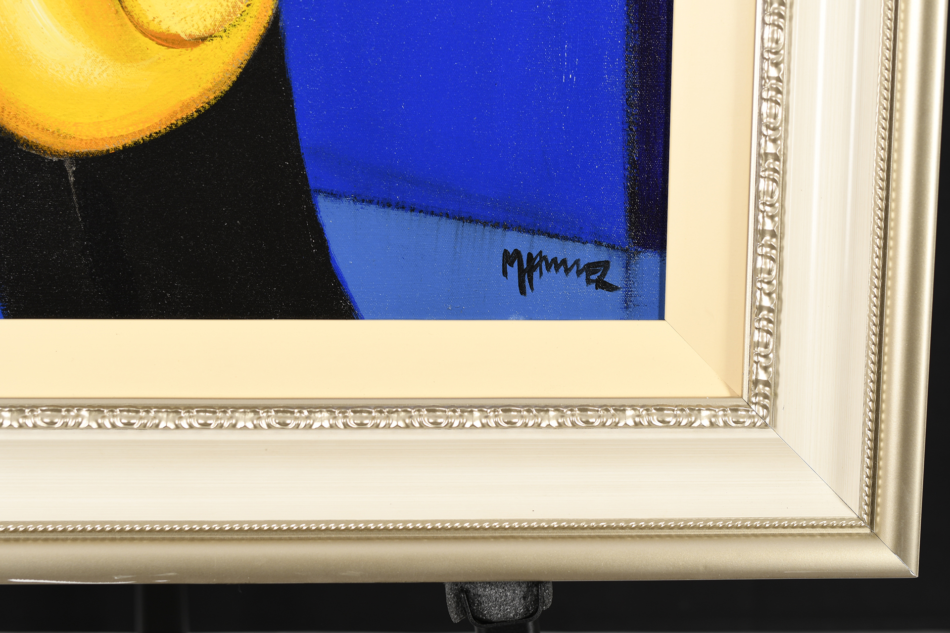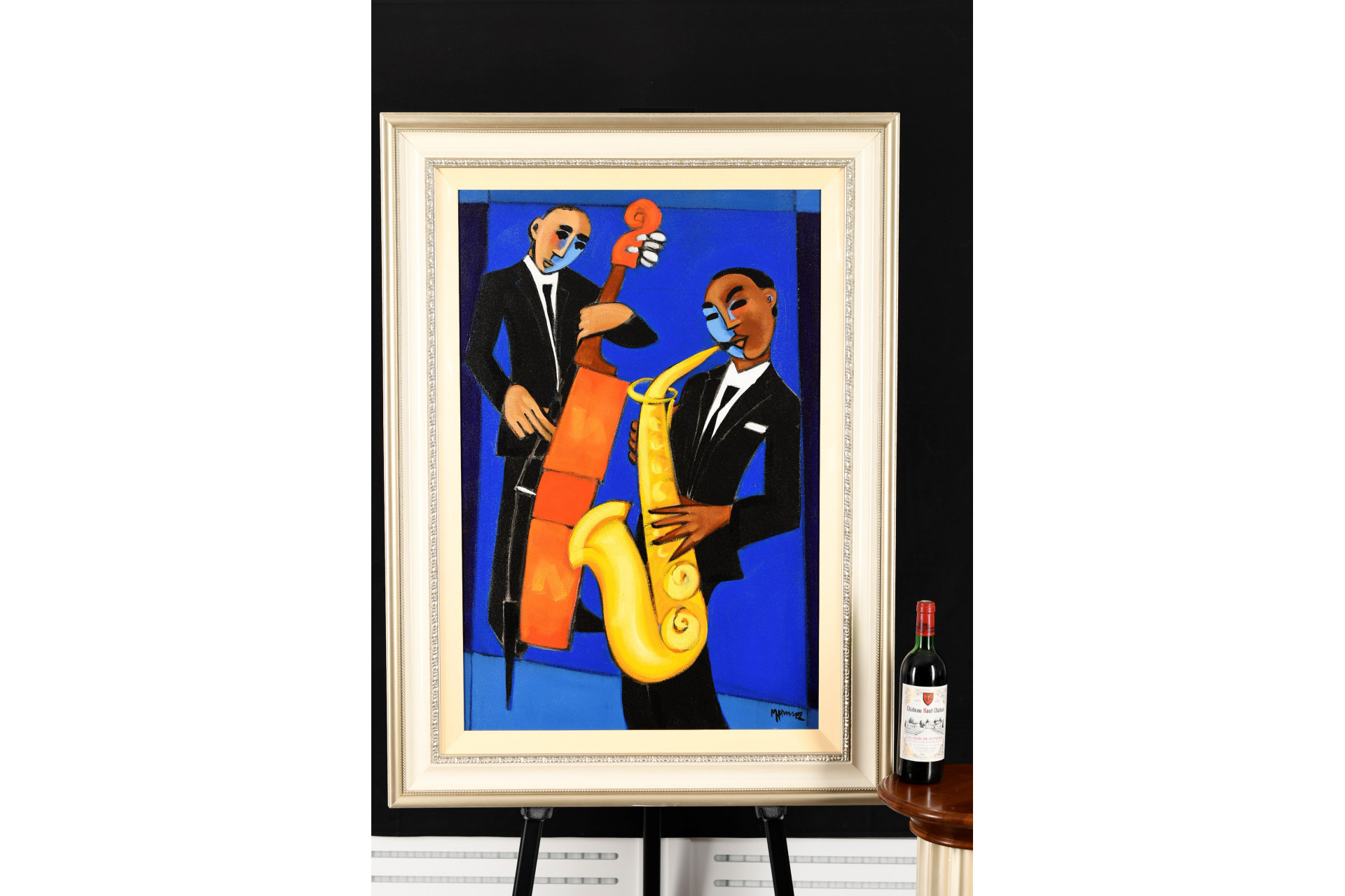 Superb Original oil on canvas by the fabulous American artist Marsha Hammel. Titled "Indigo Jazz - Bass & Sax" The painting has been signed and also titled on the reverse by the artist. It has been professionally framed in a bespoke very expensive hand made frame with liner. This original work of art is supplied with an replacement valuation for £8000 (free of charge) The latest Limited Edition book by the artist sells for around £250 with some Marsha Hammel limited editions selling in the region of £3500 and original paintings up to £20000.