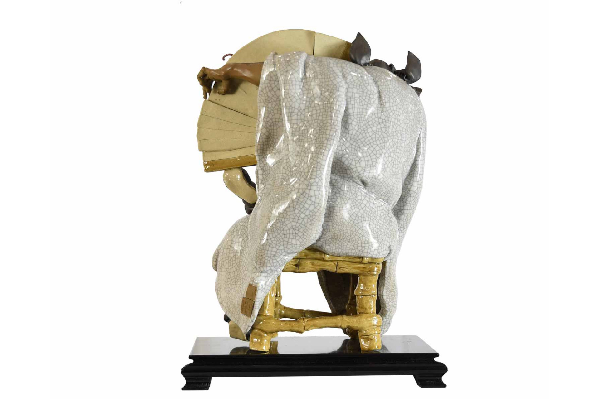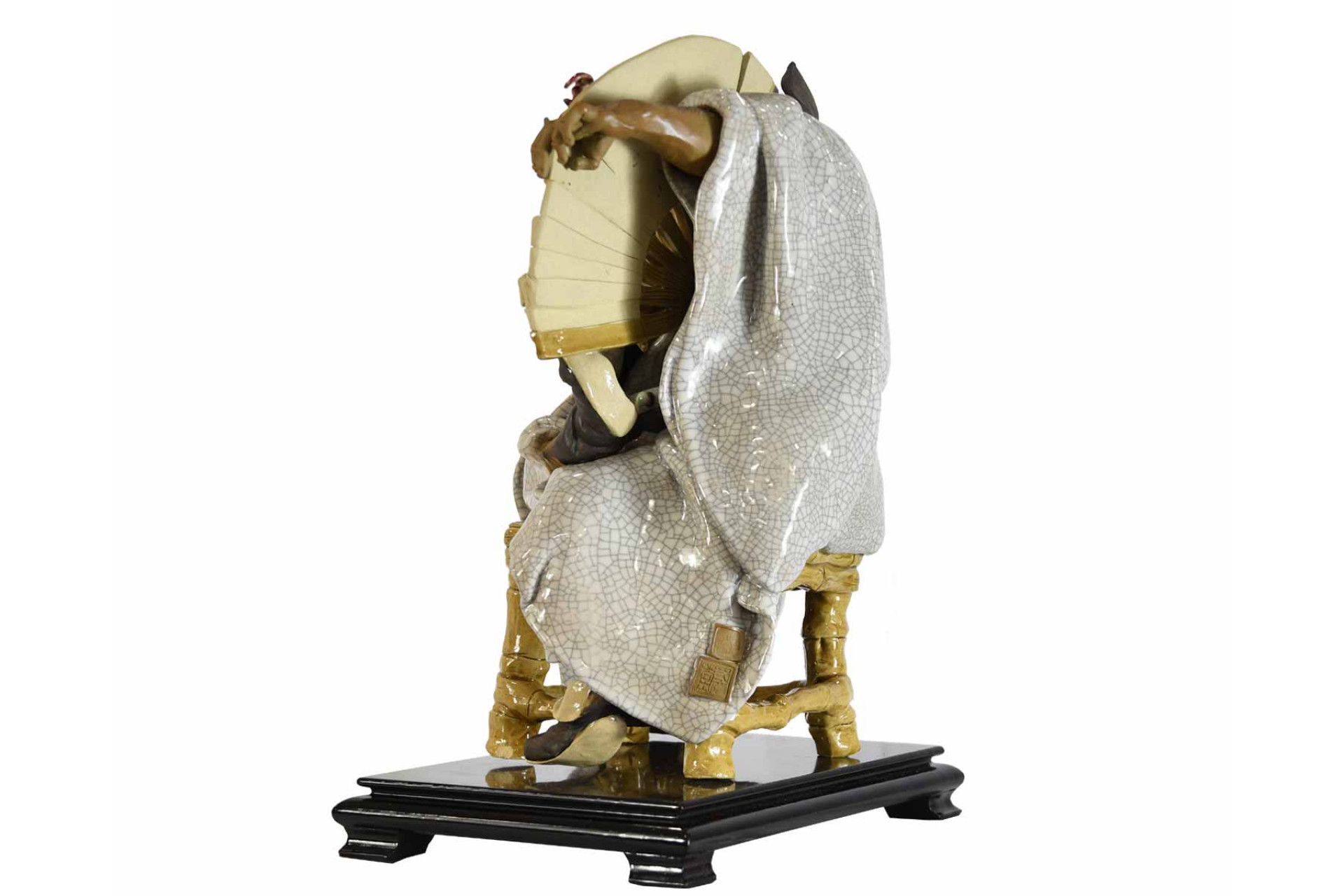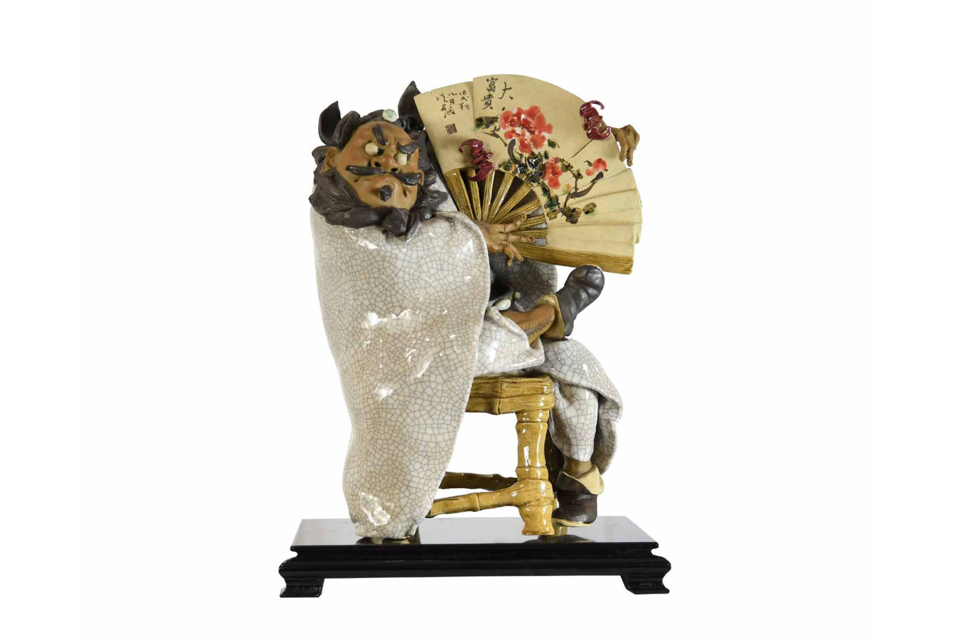 Original handmade Shiwan ceramic figure with hand painting and crackle glaze. Origin Foshan, Guangdong Province circa 1990s Condition Good