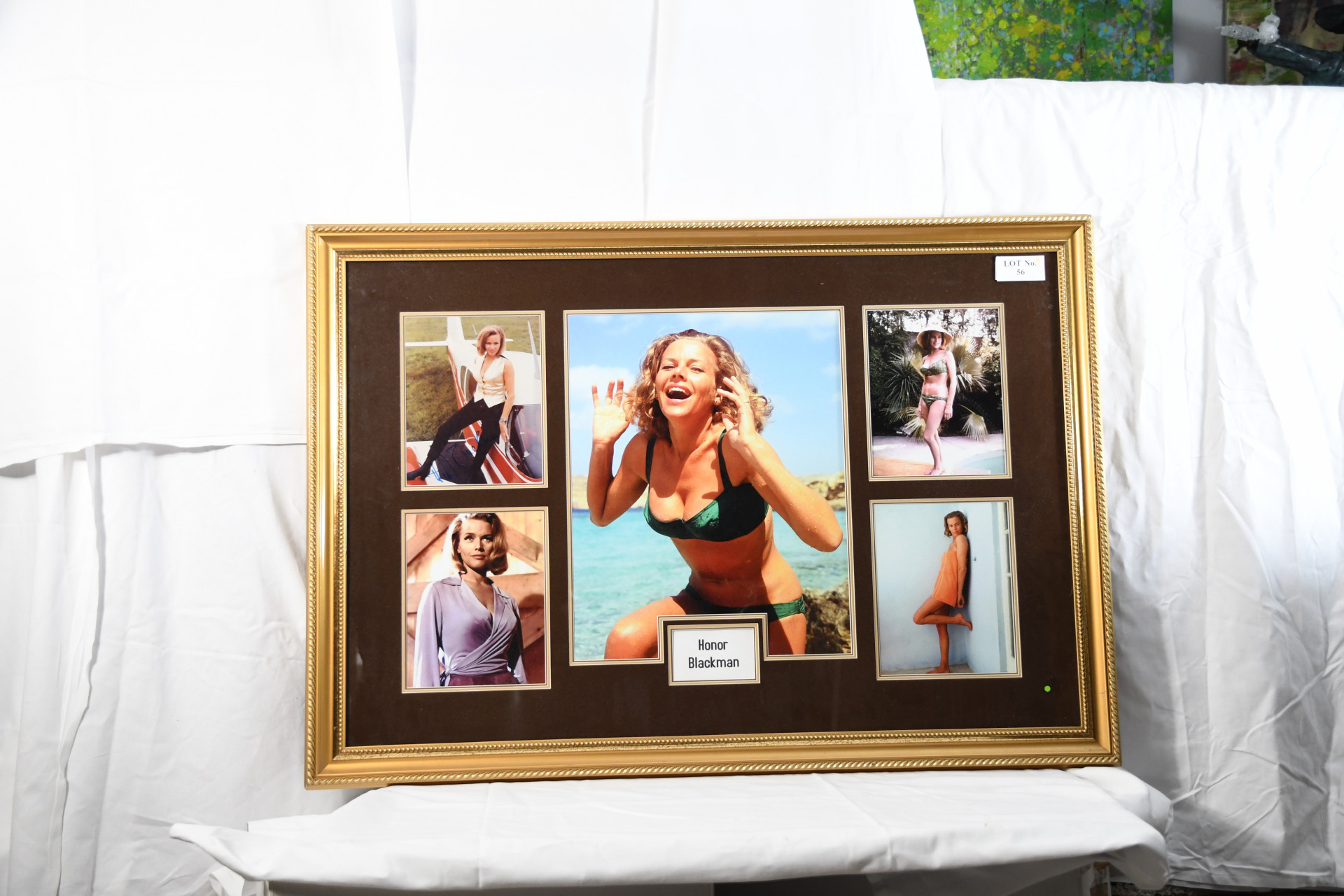 Framed montage of Honor Blackman incorporating an original signed photograph. Very nicely framed and mounted. NOTE: This item will be supplied with a Certificate of Authenticity (Free of Charge).