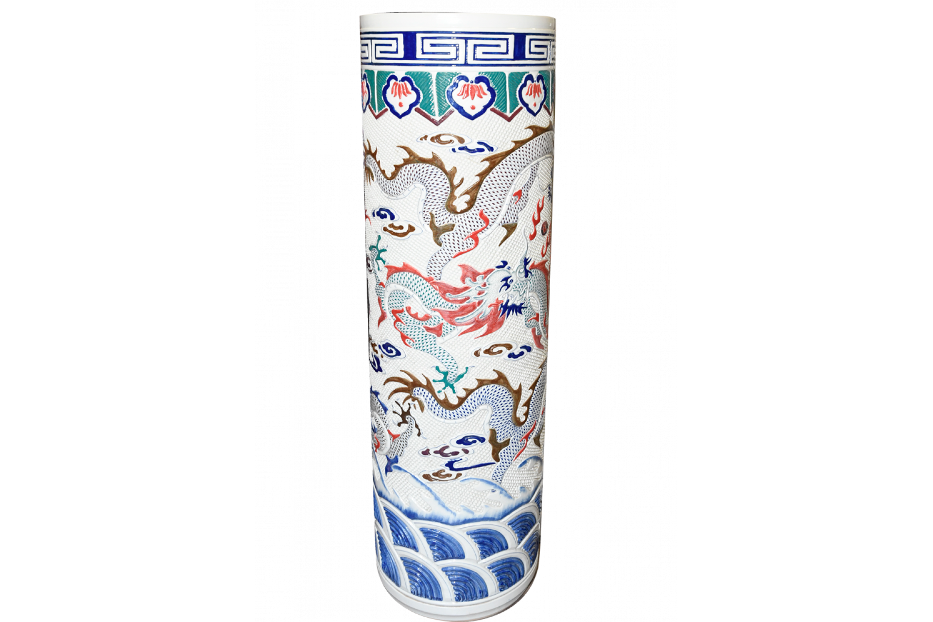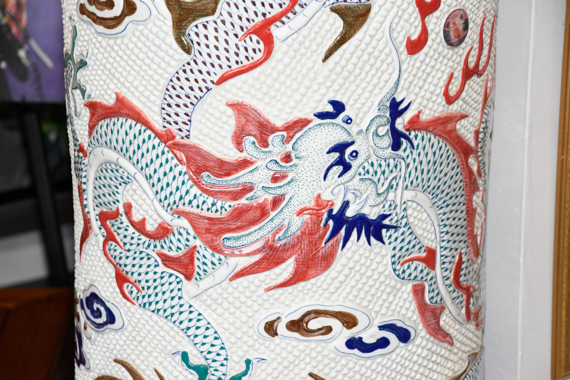 5ft porcelain hand painted and embossed Chinese dragon vase. Origin Jingdezhen circa 1980s. Condition very good.