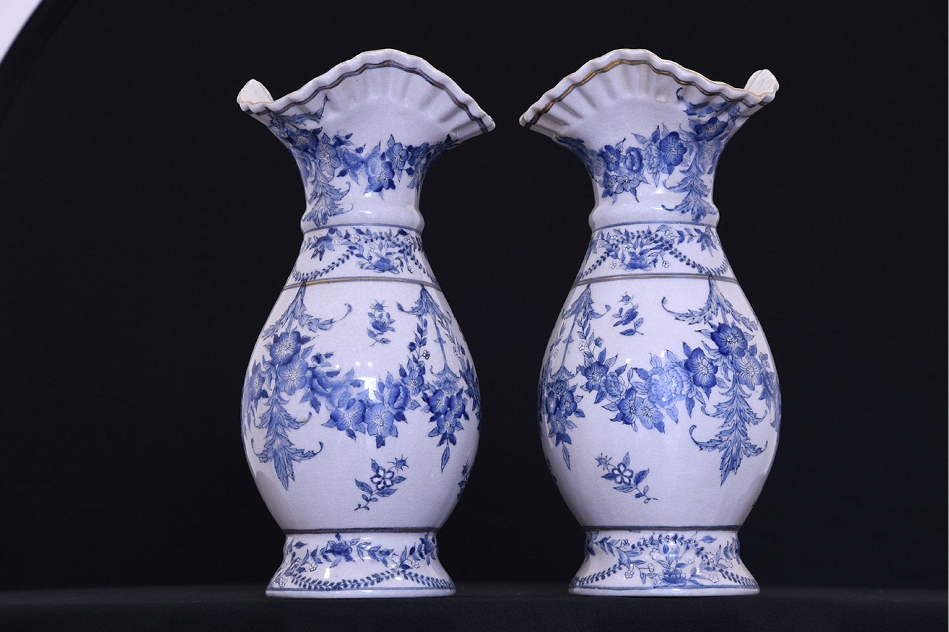 A pair of blue porcelain vases.