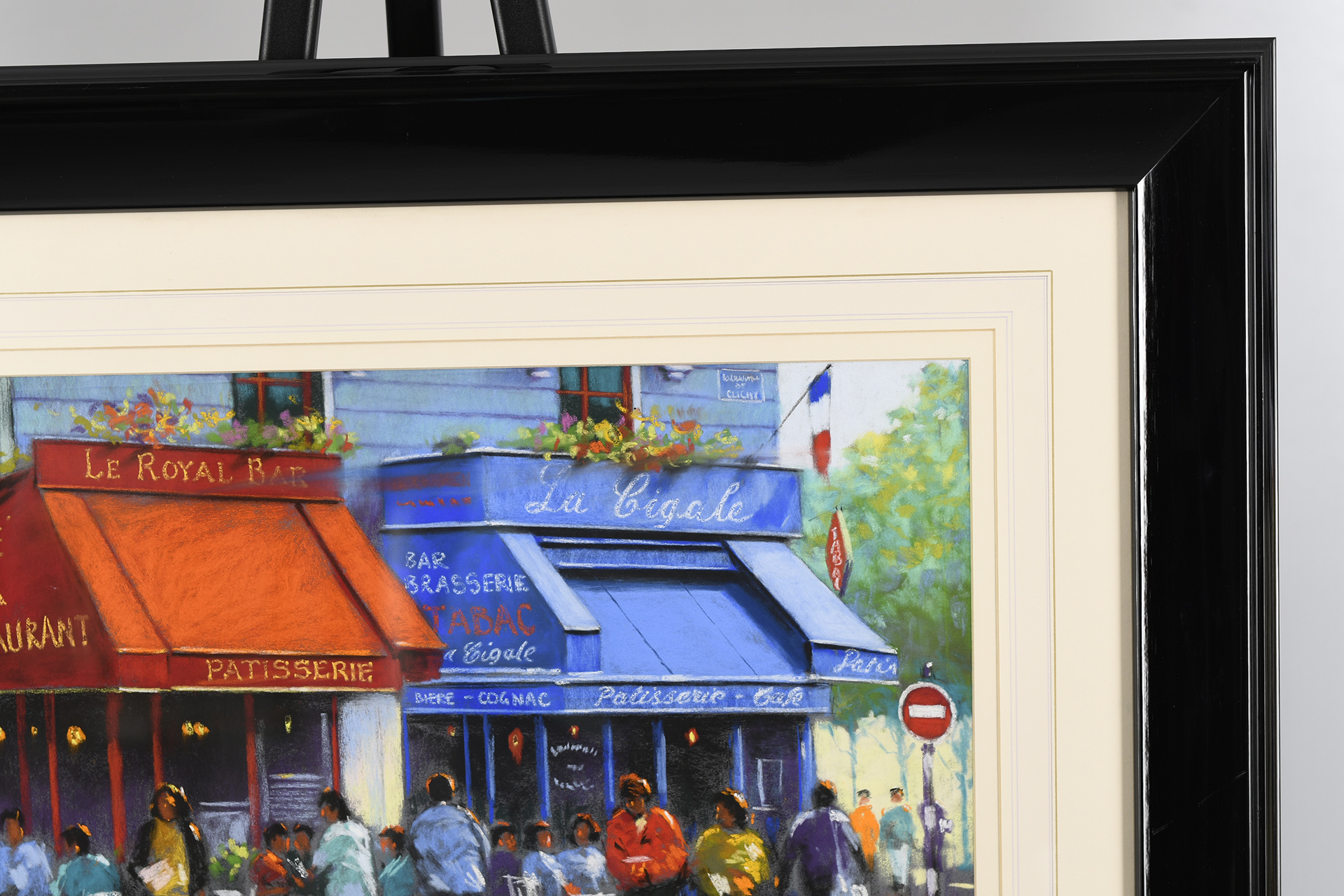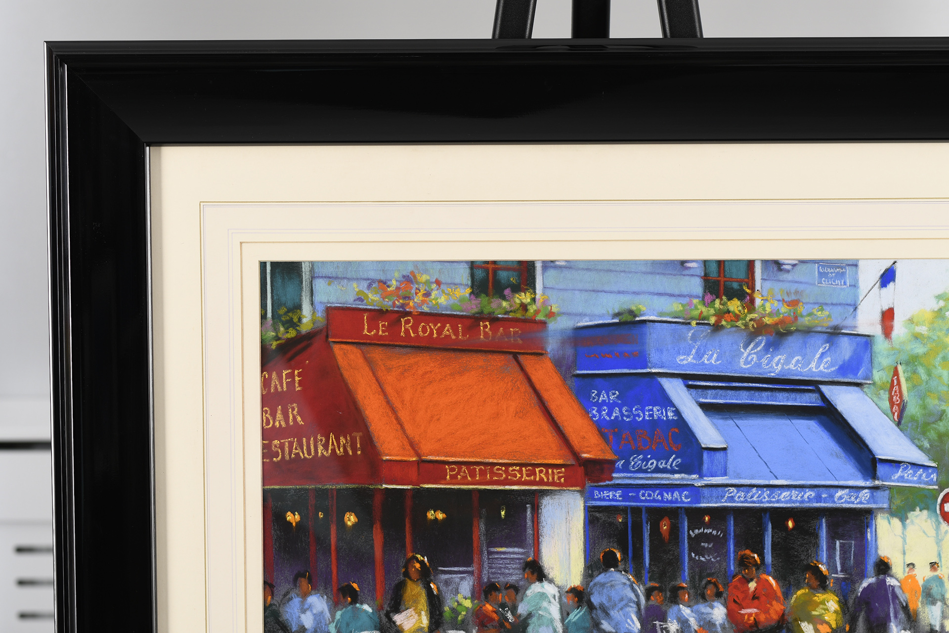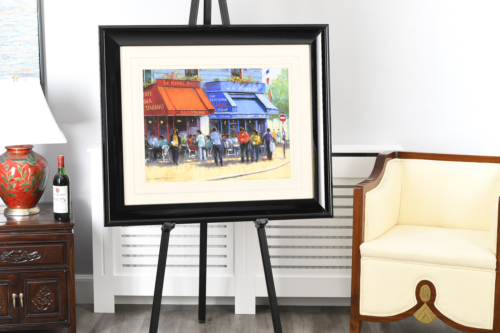 Framed original Pastel painting by the English artist Anthony Orme. A very colourful painting depicting a French cafe scene. It is titled "The French Patisserie". Very nicely framed with a hand coloured washline mount. It is supplied with a replacement valuation for £2200 along with biographical details on the artist.
