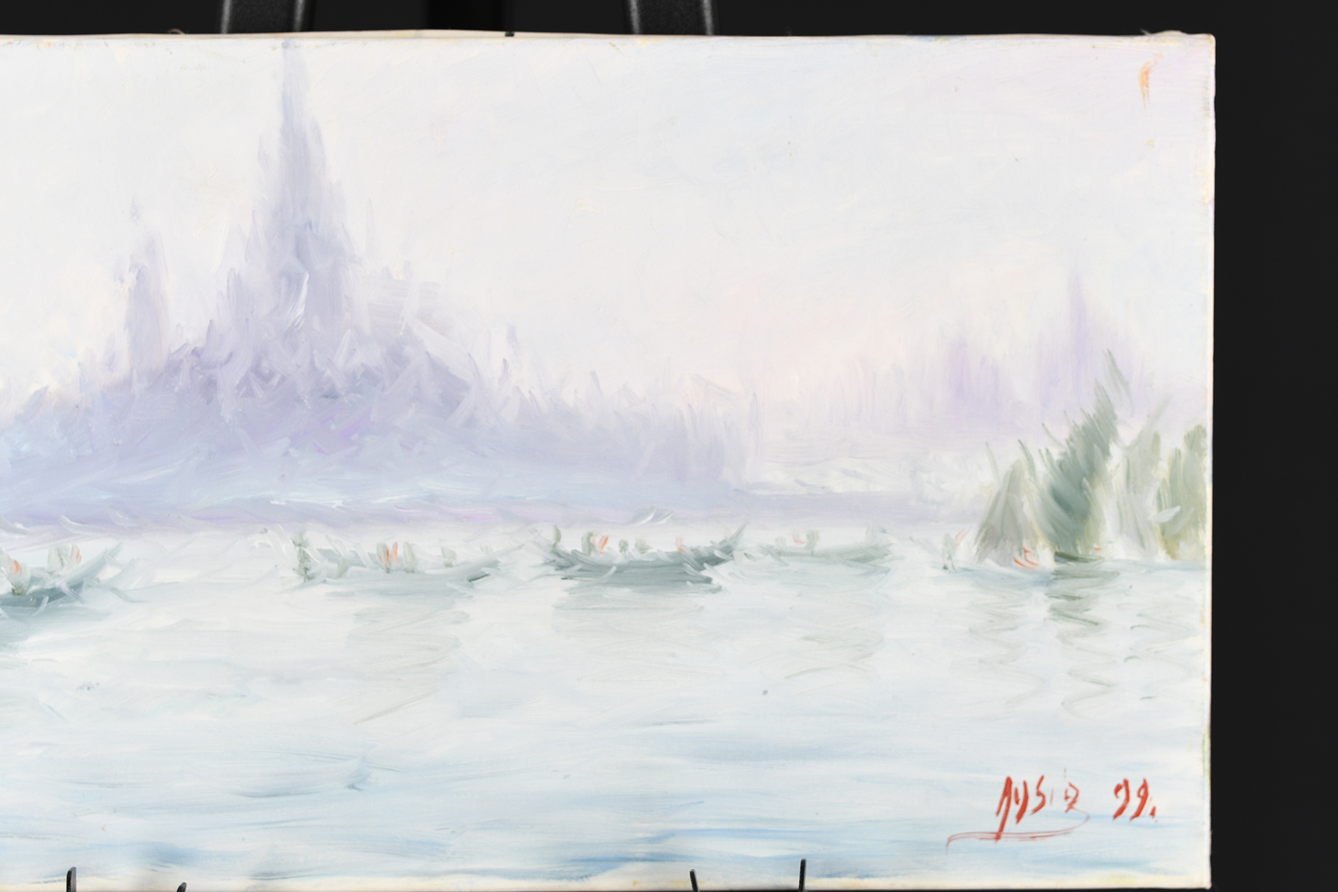 - Oil on Canvas Gondolas in Venice by Roberto Masia