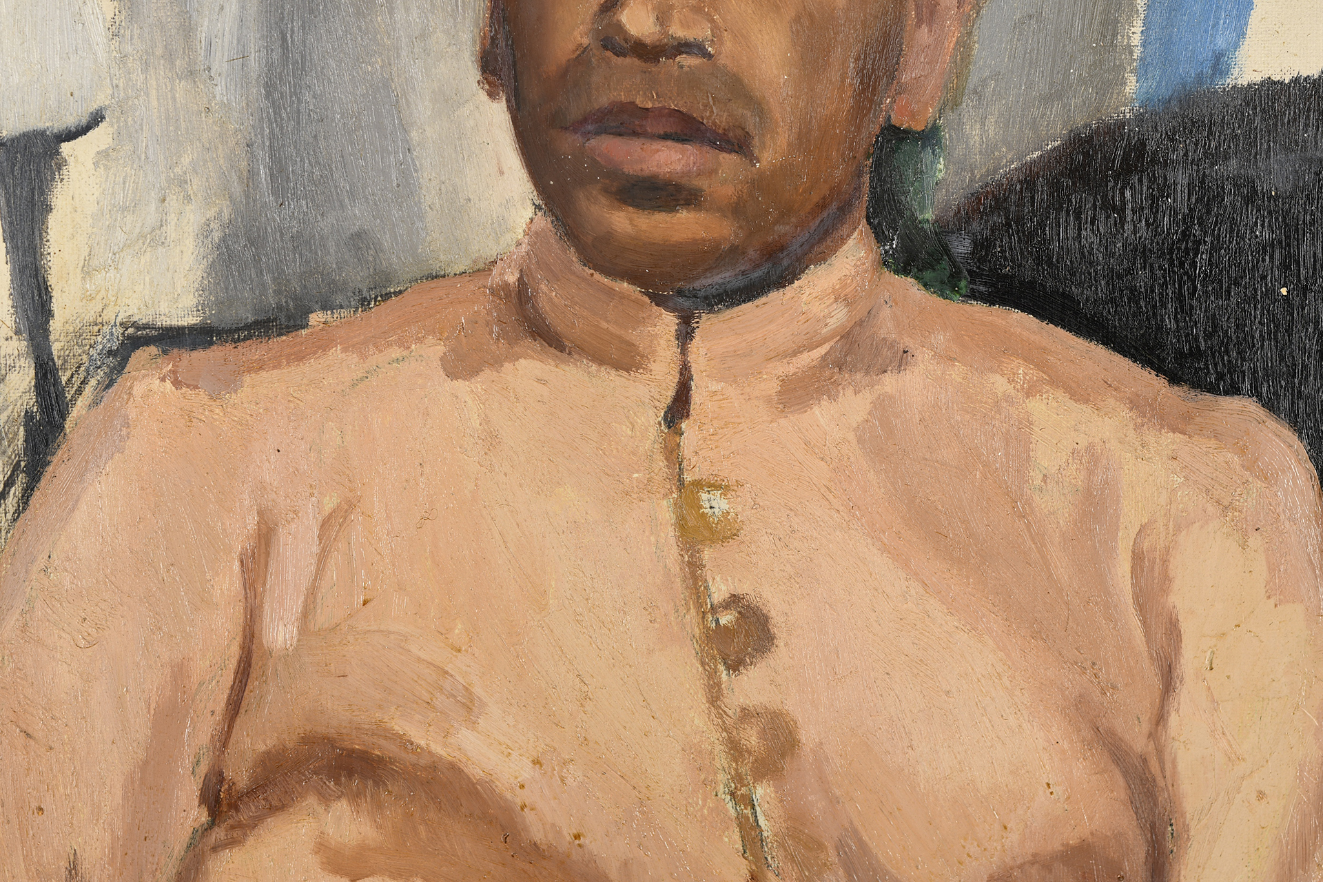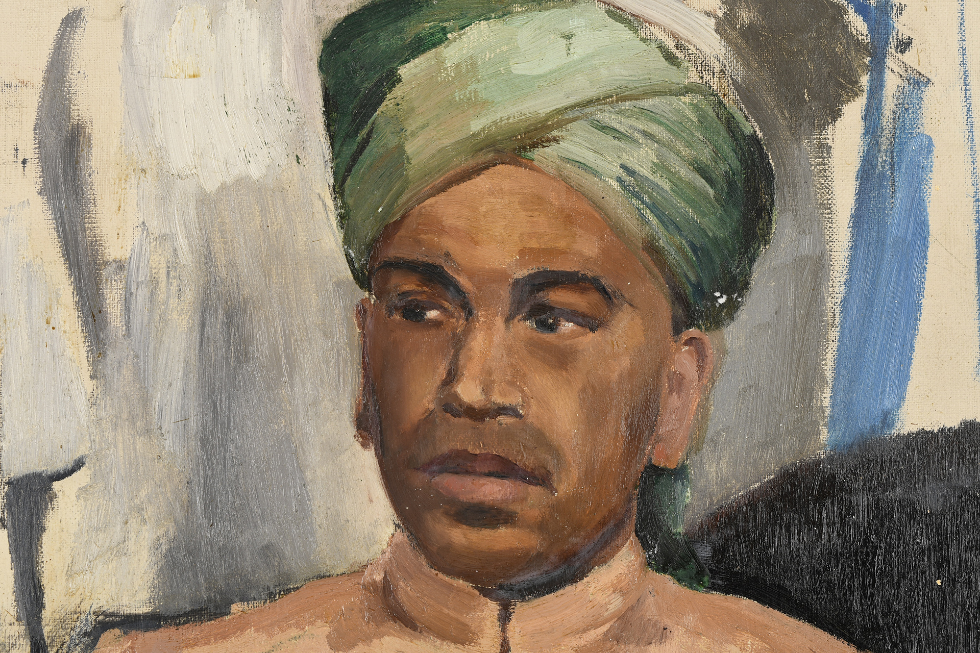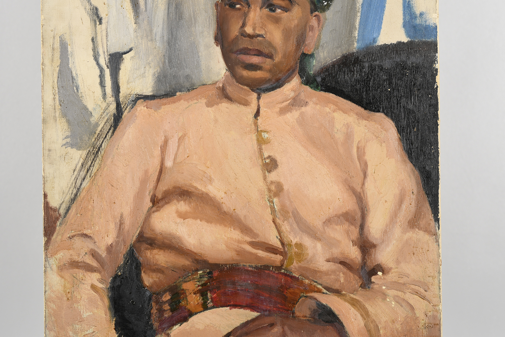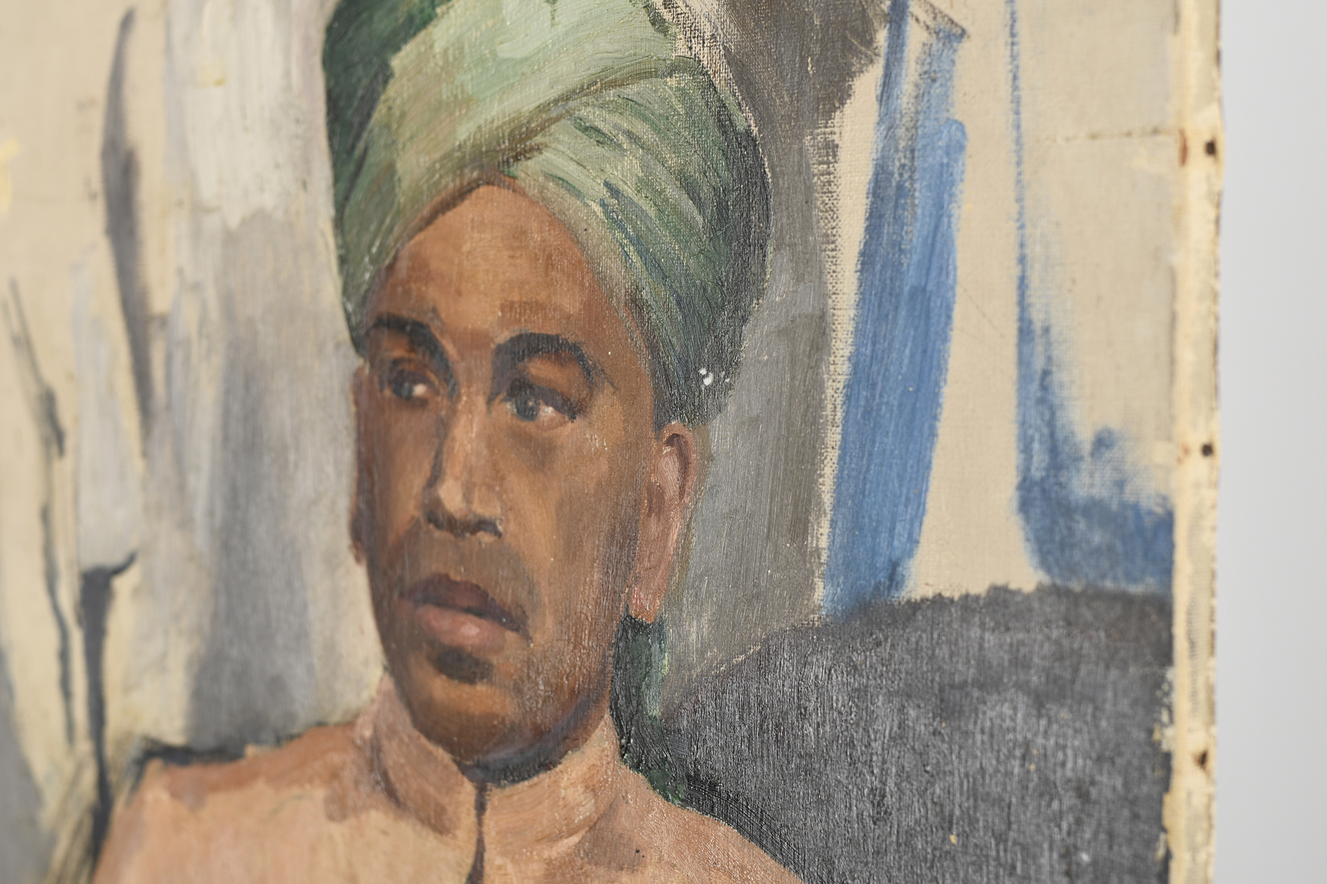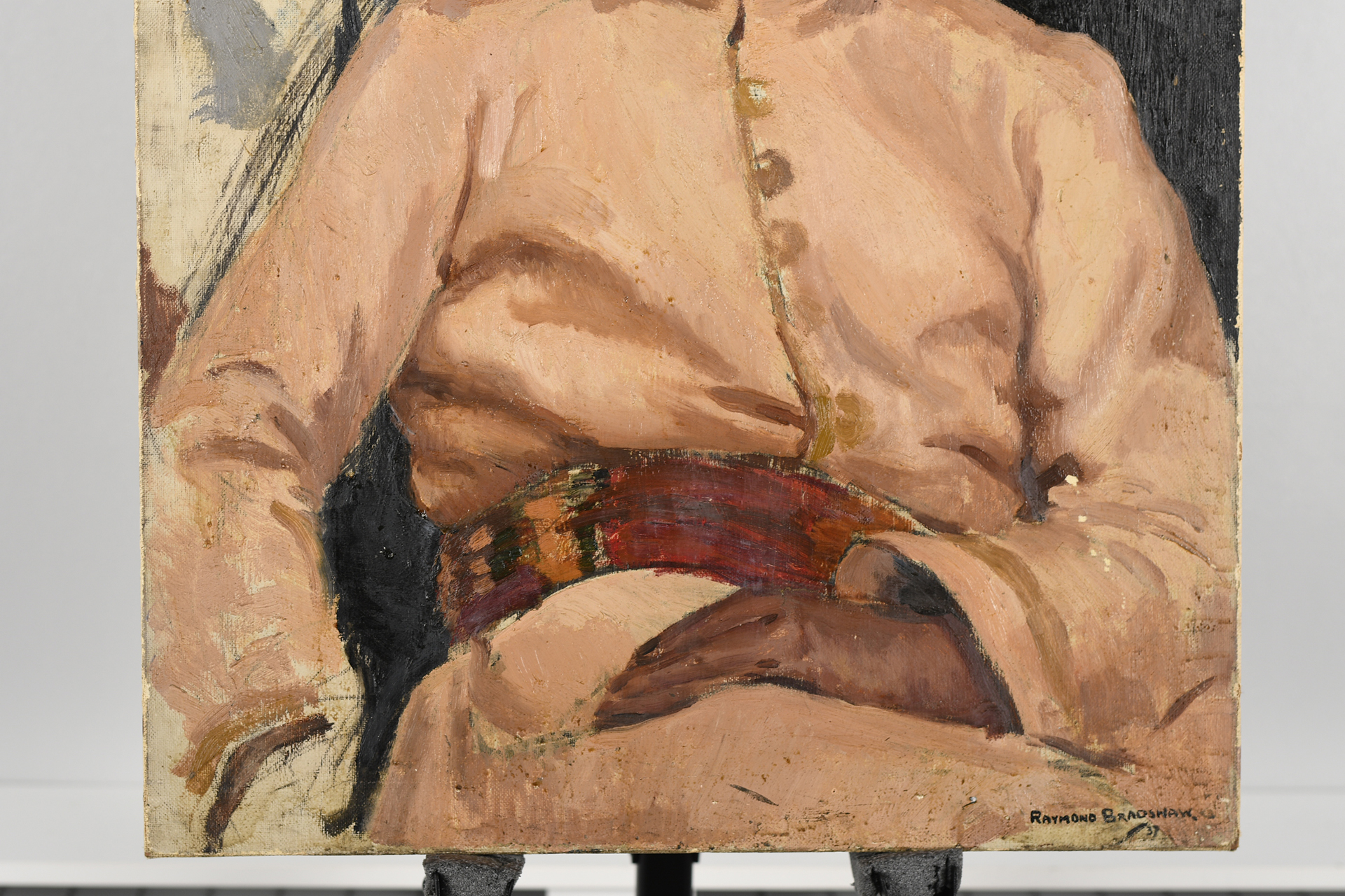 Original oil on canvas by Raymond Henry Bradshaw (1918-1997). Titled Maj. M.A. Fry, Indian Parachute Battalion. Painted March 1937 as listed on reverse. Supplied with original brochure from the 1947 Essex Art Club exhibition where this painting was listed. It was presented by the famous artist Sir Alfred J. Munnings.