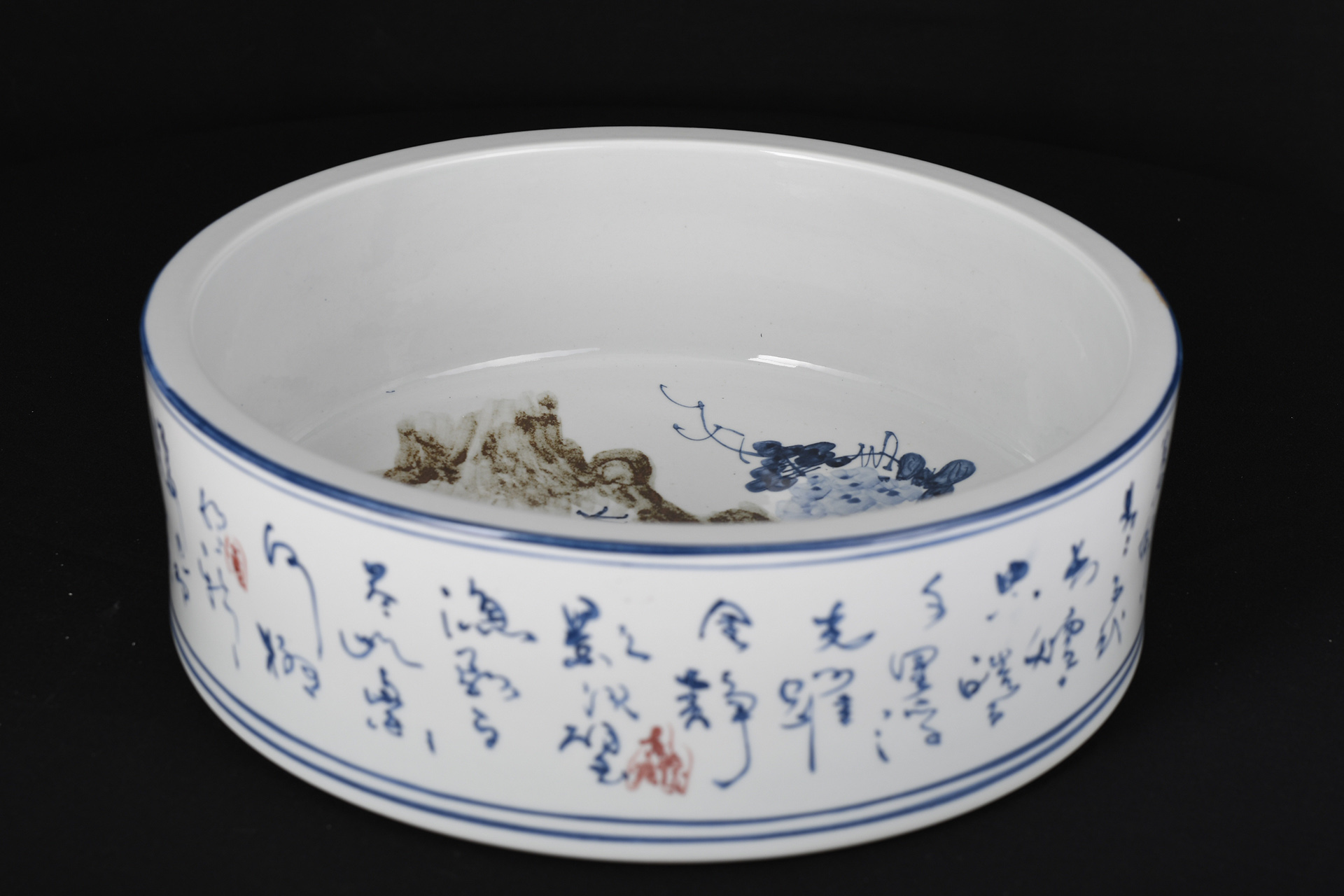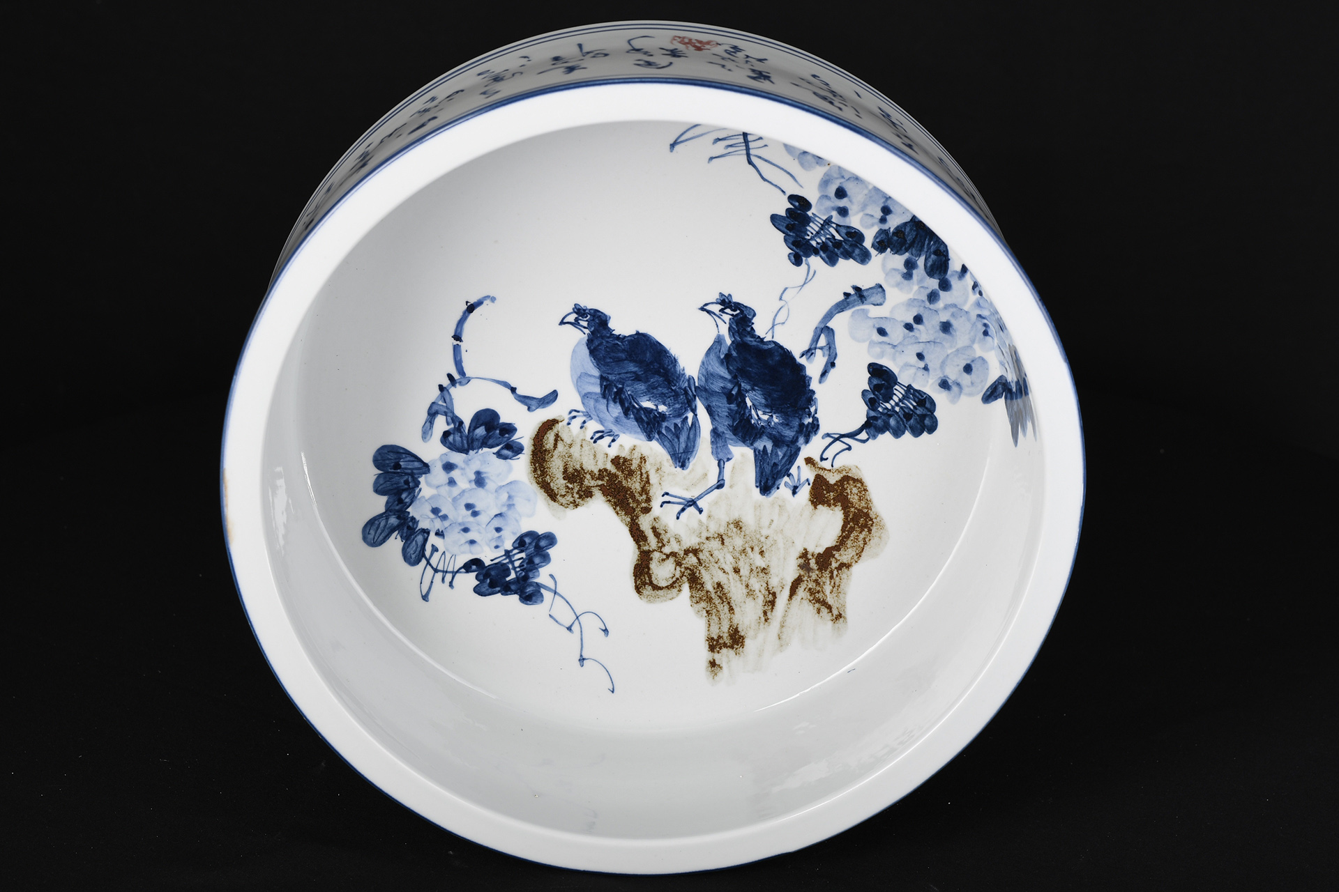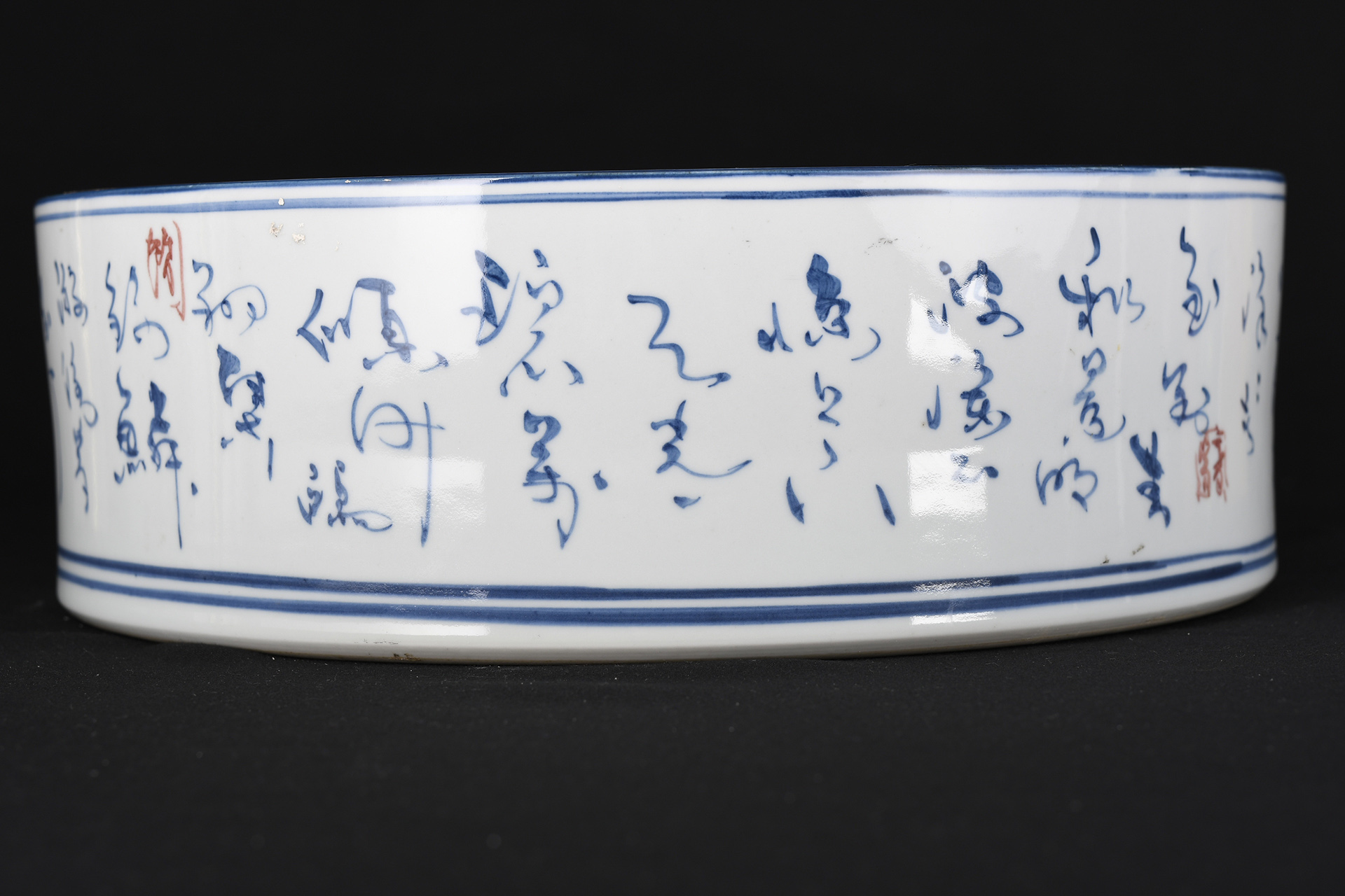 Original hand painted porcelain bowl with floral design and Chinese characters Origin Jingdezhen Circa 1990 Condition Good