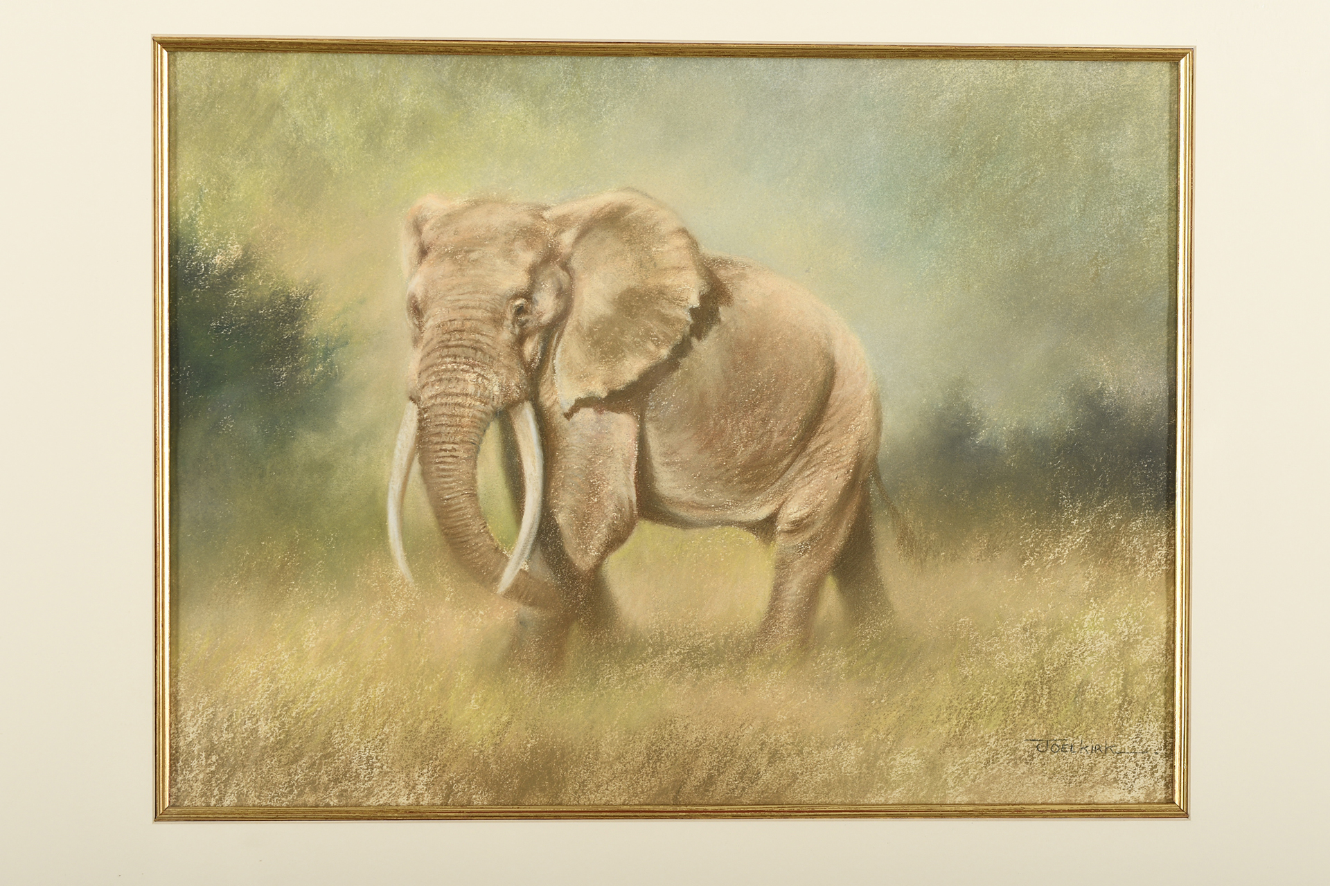 An original elephant study pastel by the much loved late English artist Joel Kirk 1948-2020. The artist was famous for his wildlife paintings and worked with the Dian Fossey Foundation to raise funds for the Silverback Mountain Gorillas.