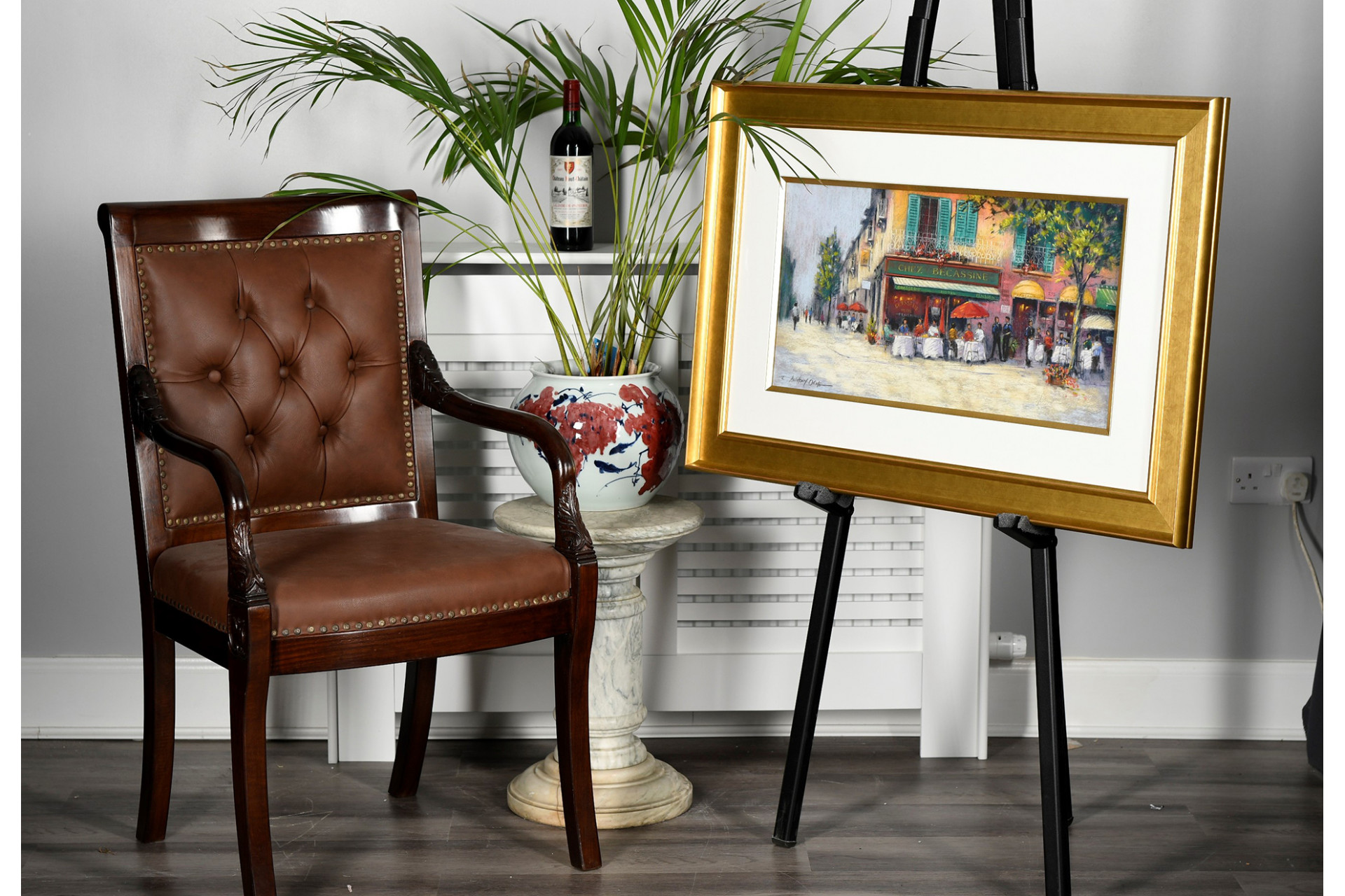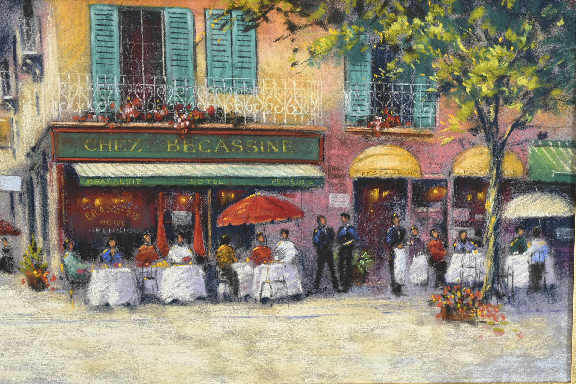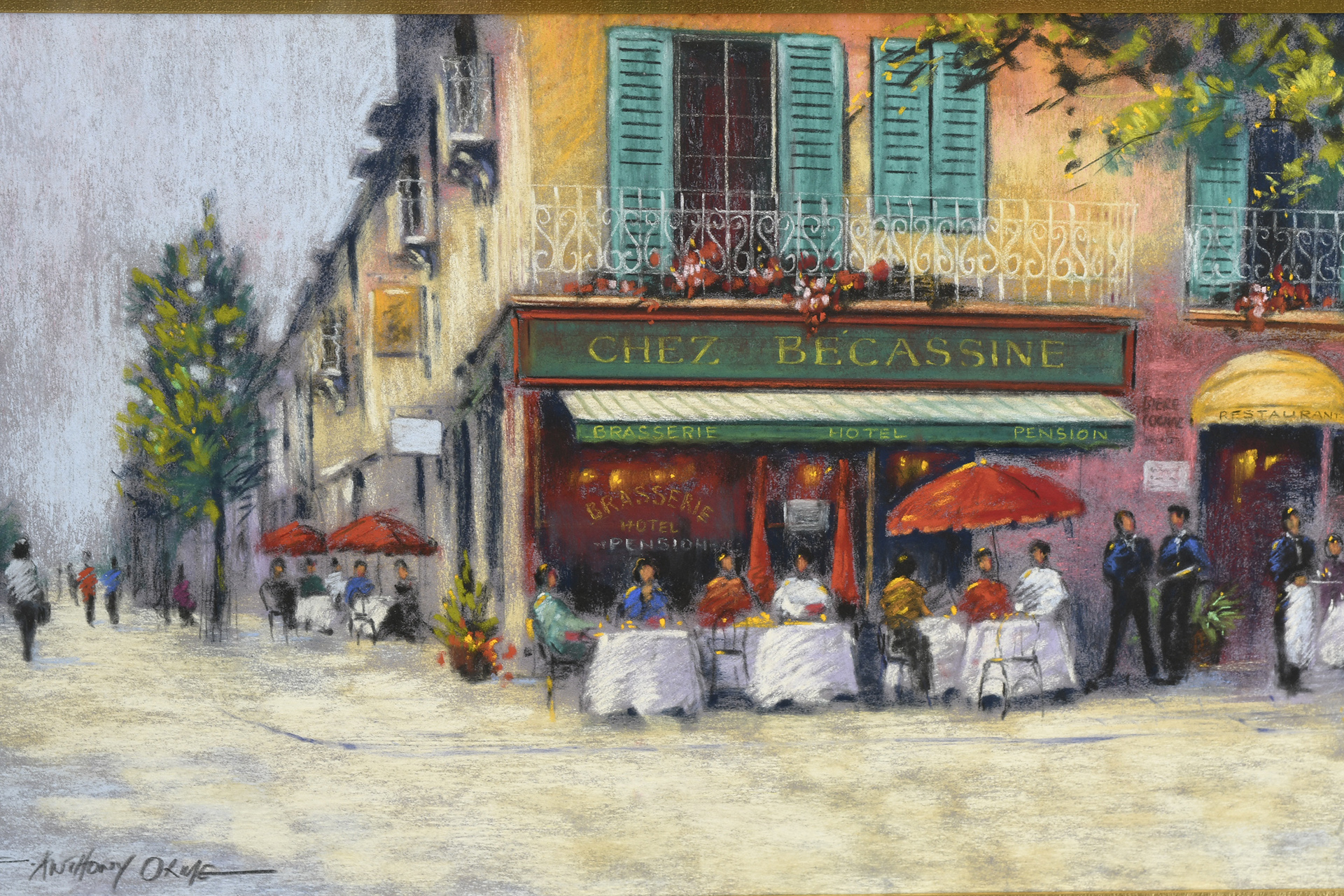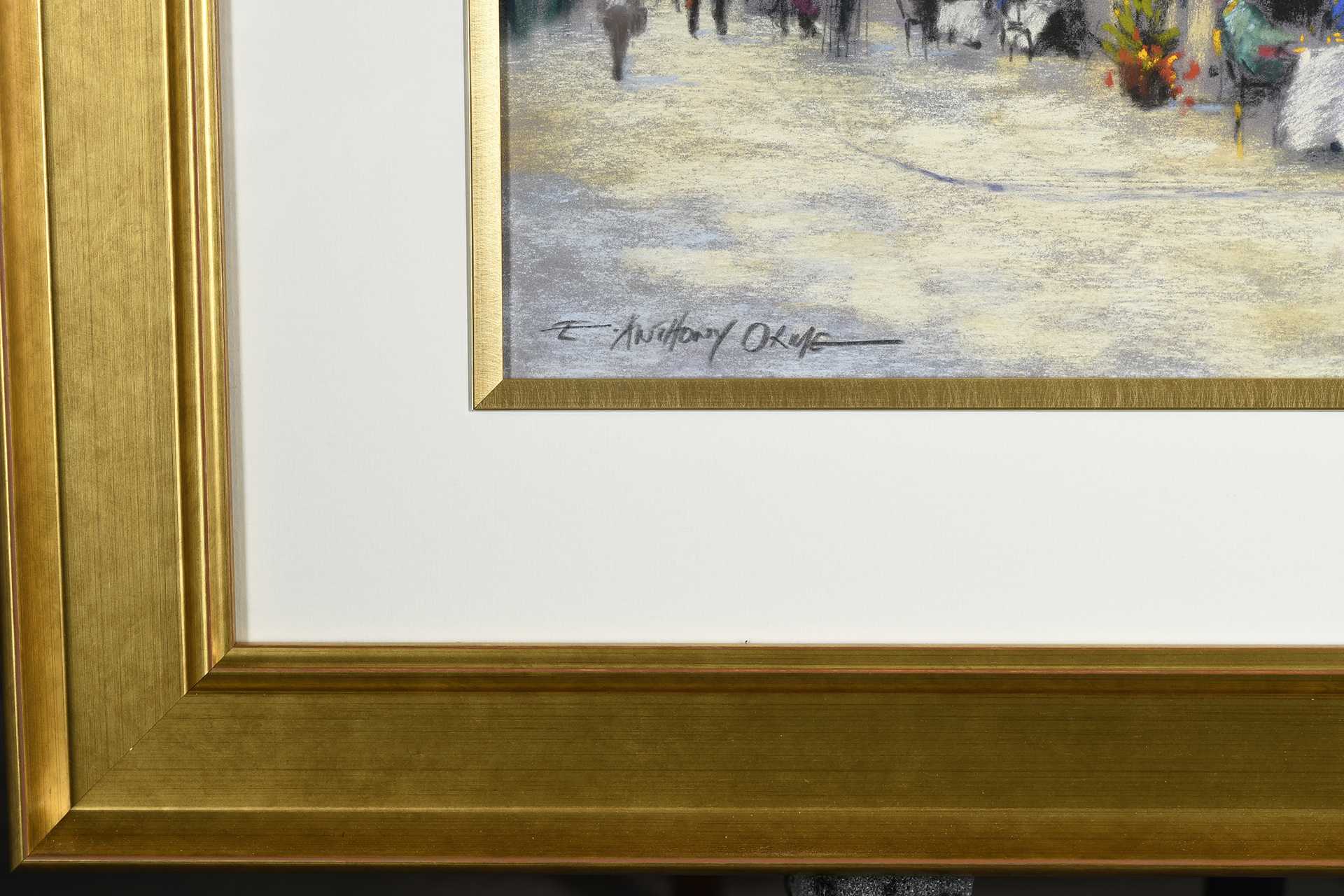This is a lovely pastel painting by the talented and respected English artist Anthony Orme. It depicts a very delightful and vibrant French scene painted with a beautiful pallet of colours. This fine piece of art has been very nicely framed and mounted. Note: supplied with a replacement valuation (free of charge) for £2200 along with biographical details on the artist.