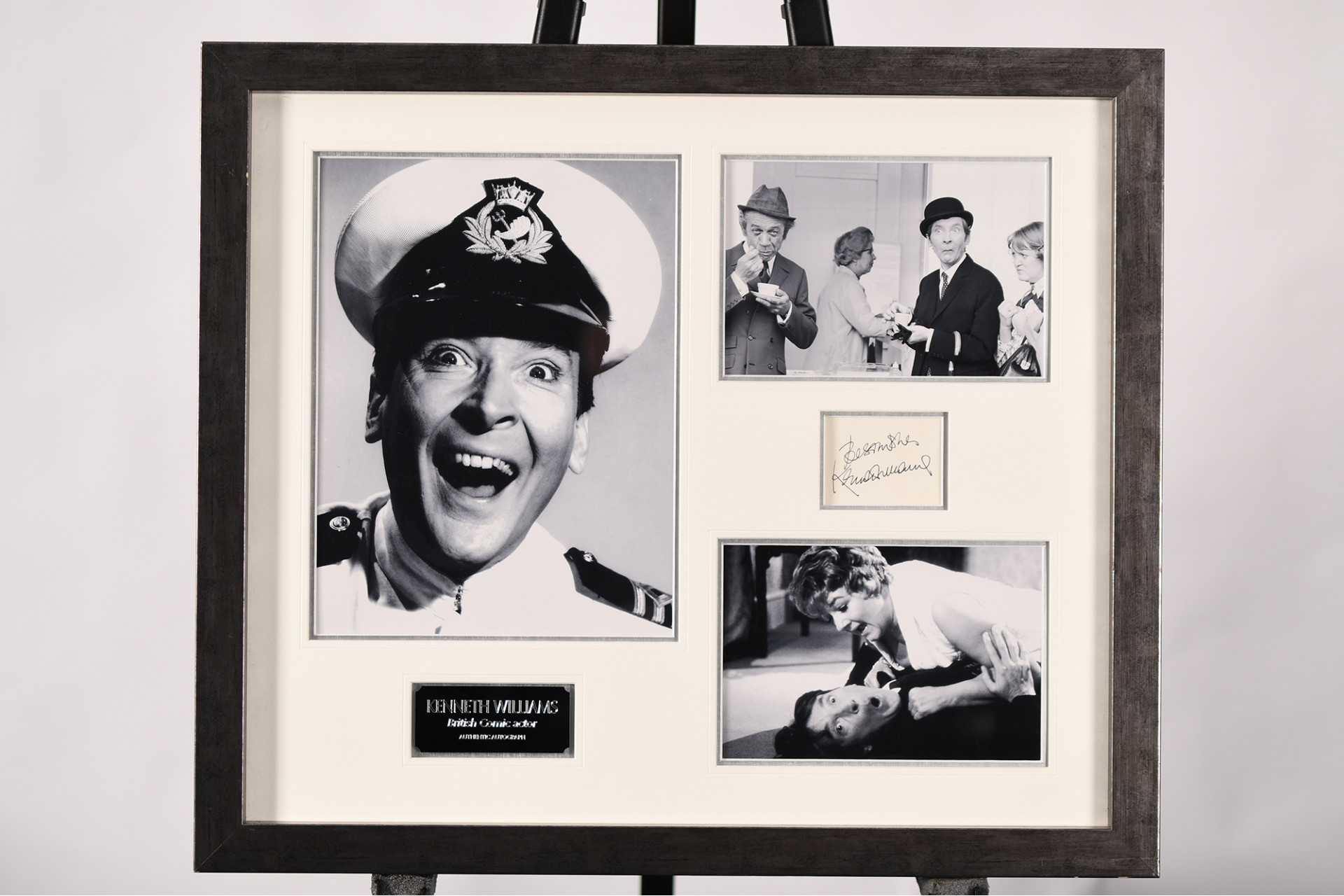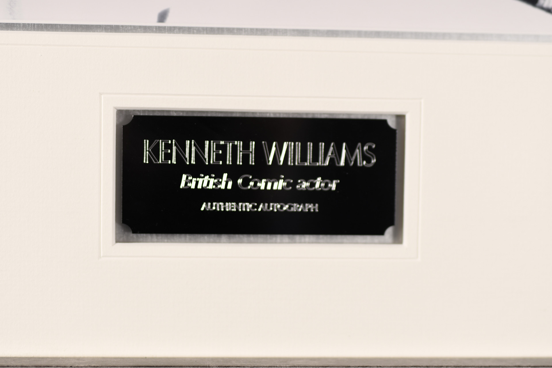Framed memorabilia presentation of the famous late British actor Kenneth Williams (1926-1988) his authenticated original signature is incorporated within the presentation. He was famous for the carry on series of films and other radio and comedy appearances. Note: this item will be supplied with a certificate of authenticity (free of charge).