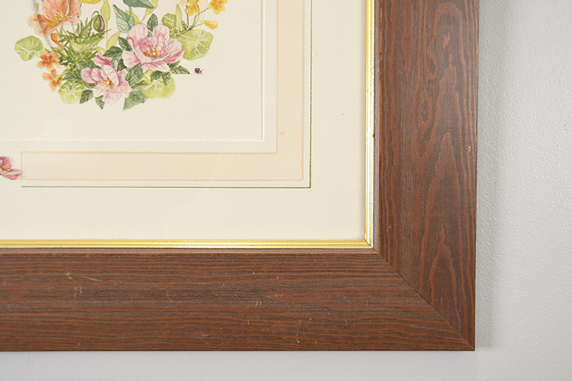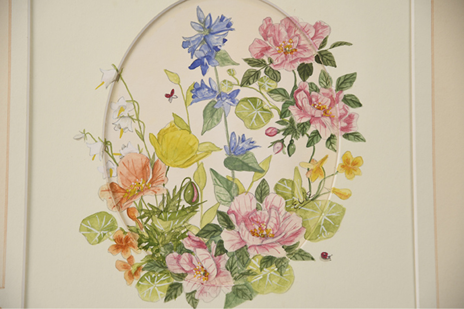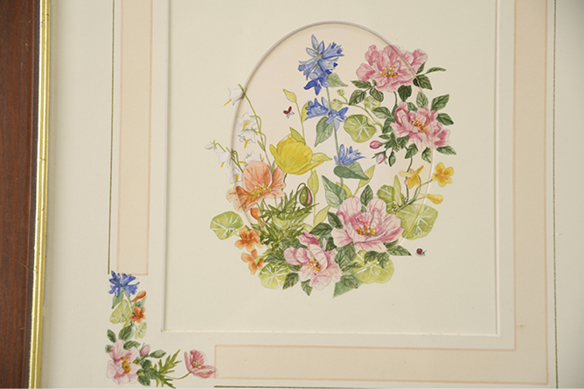 Framed original watercolour by Elie. The mount is also hand painted by the artist.