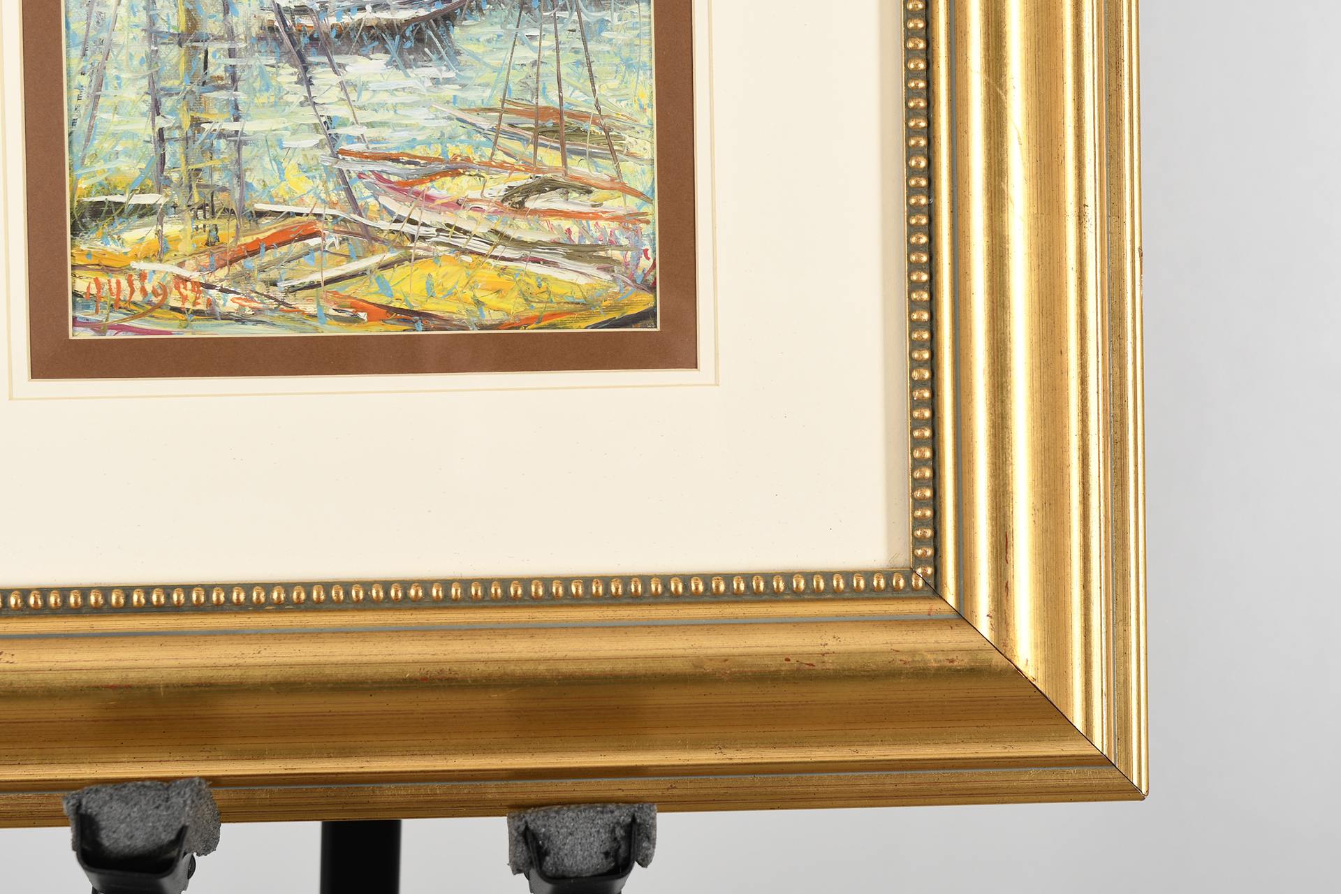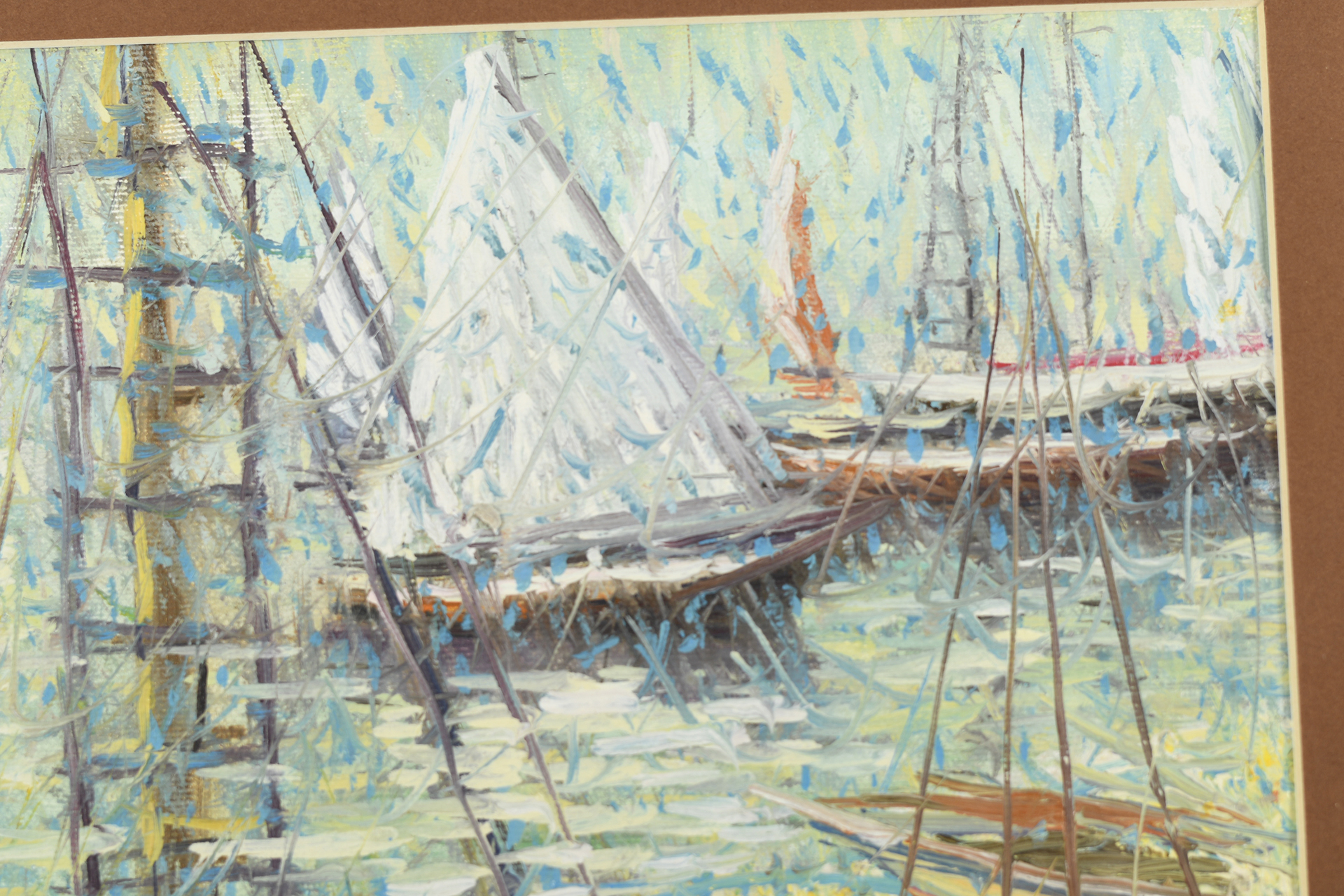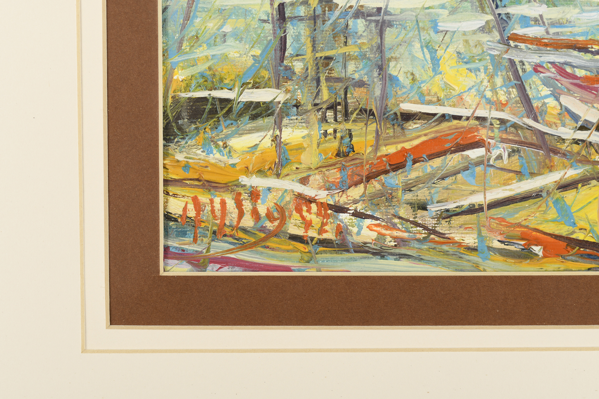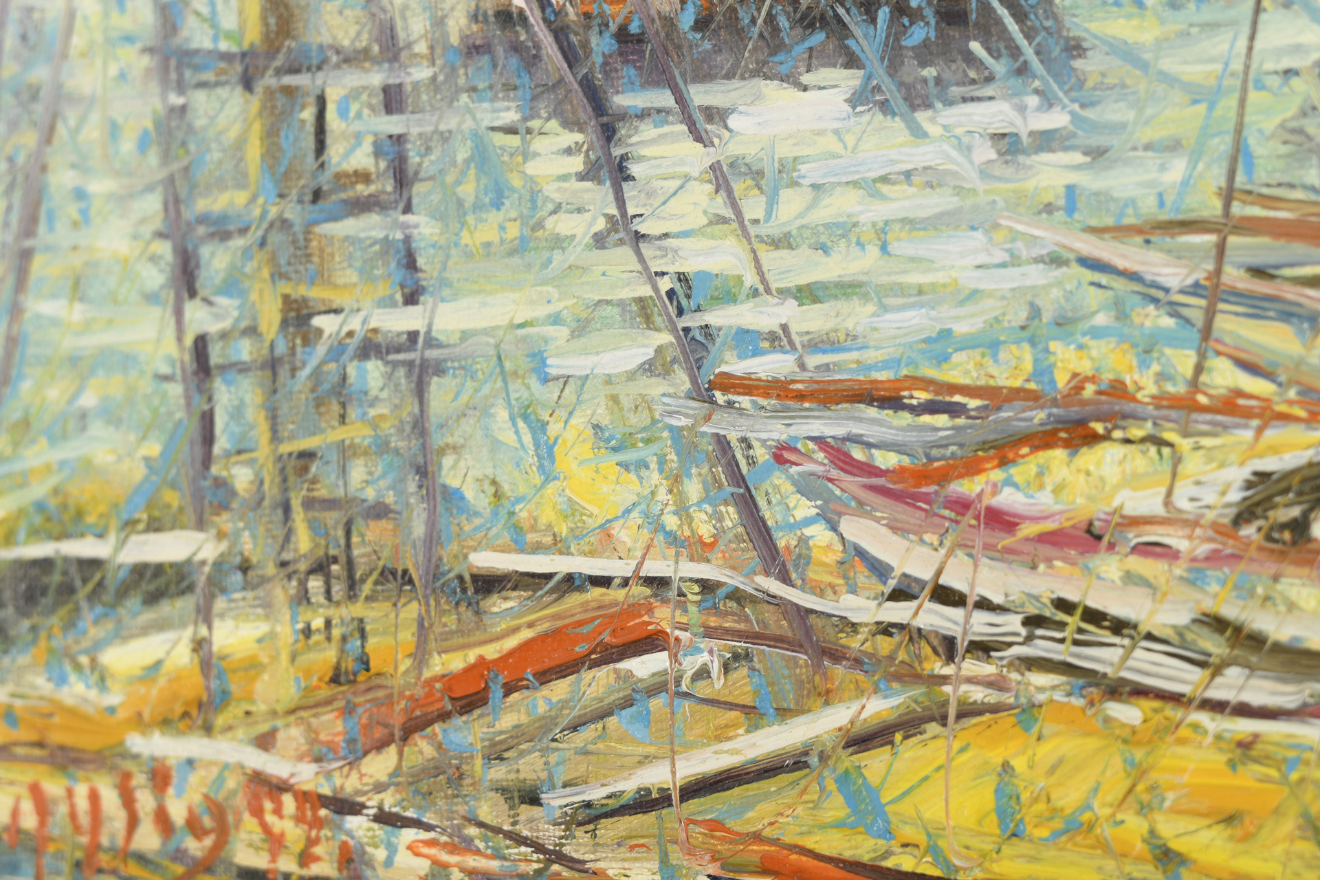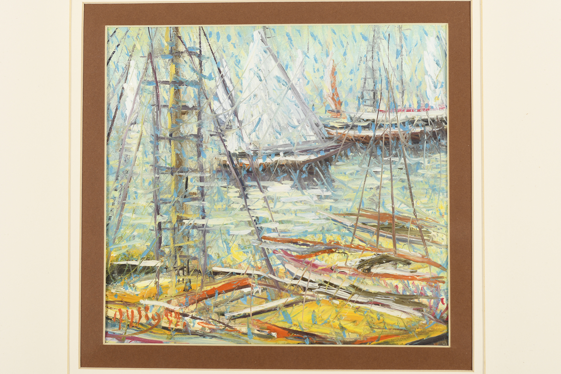 Original framed and glassed oil on canvas by the Italian artist Roberto Masia. Painting image size approx 22cm x 22cm. Very vibrant framed original oil on canvas in Masia's synonymous technique called "crushing". The artist breaks down and then reassembles the subjects, using a hundred plexigas, of various shapes, placed disorderly on the canvas.