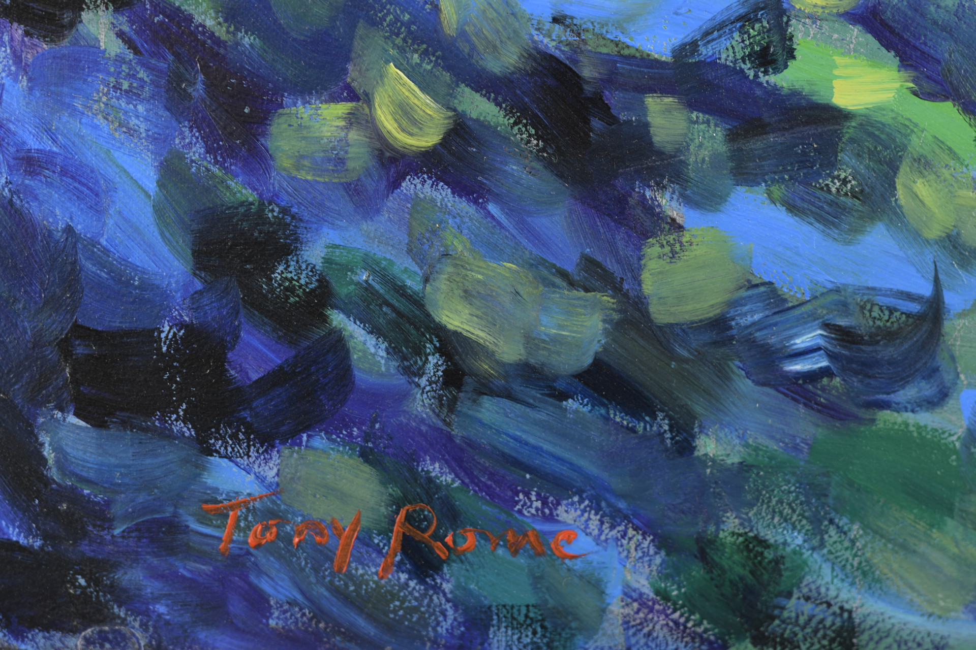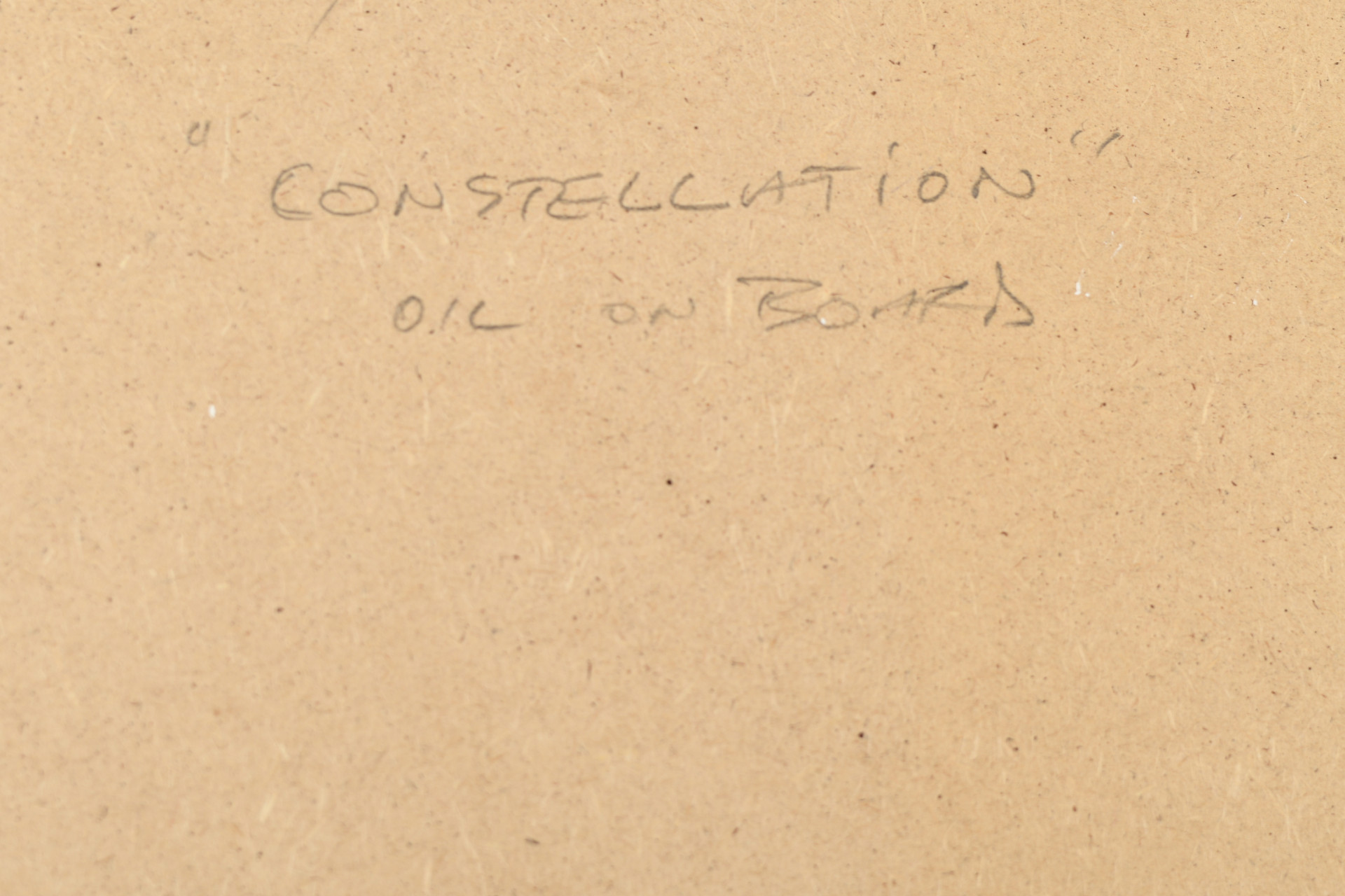 Original oil on board by the artist Tony Rome. Titled "Constellations" on the reverse by the artist. Ready to frame. Supplied with a replacement valuation Certificate for £2500 and biographical details on the artist (This is supplied at no extra cost)
