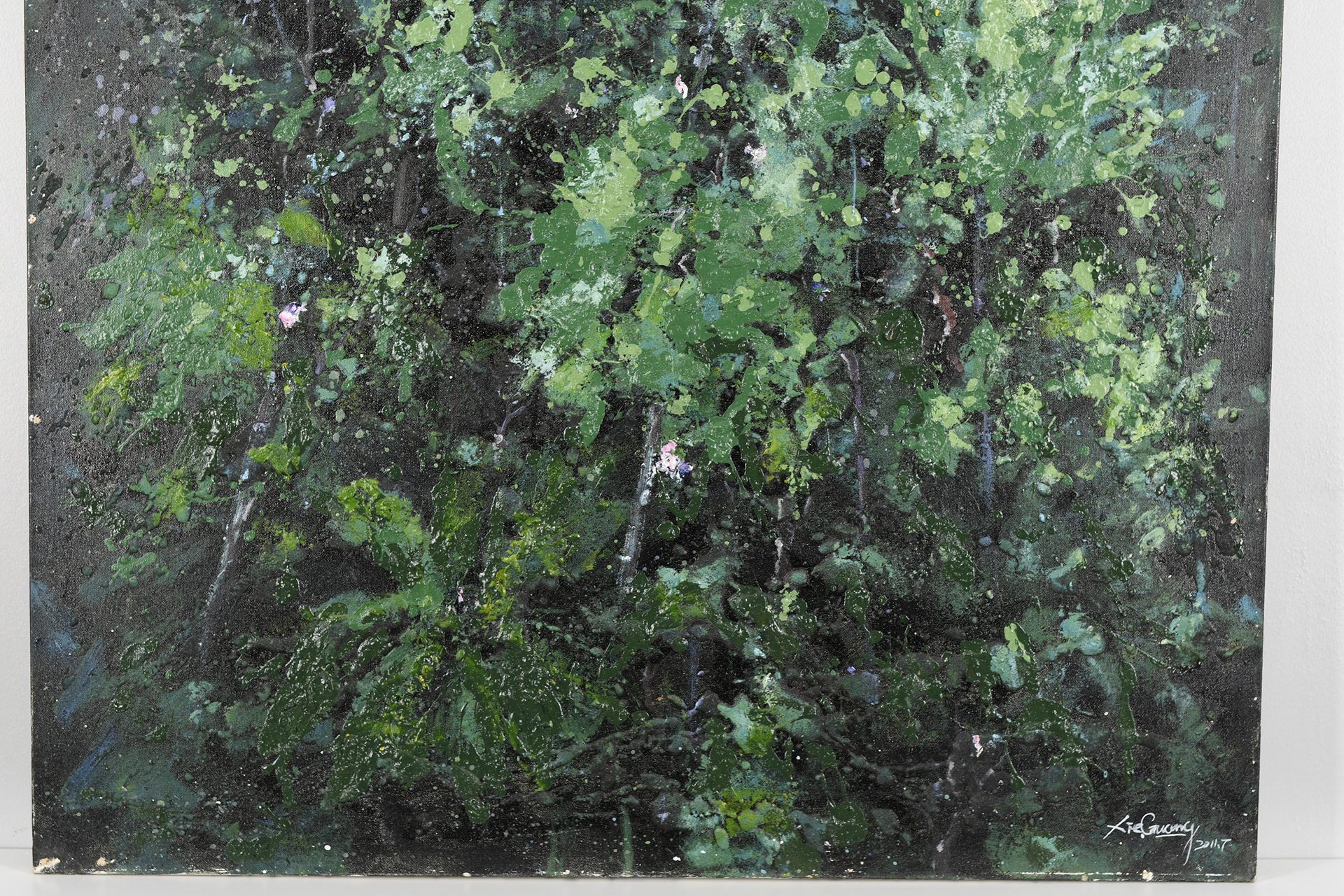 Very large original painting on boxed canvas. Heavy impressionist scene which is signed at lower right by the Chinese artist. Dated 2011.