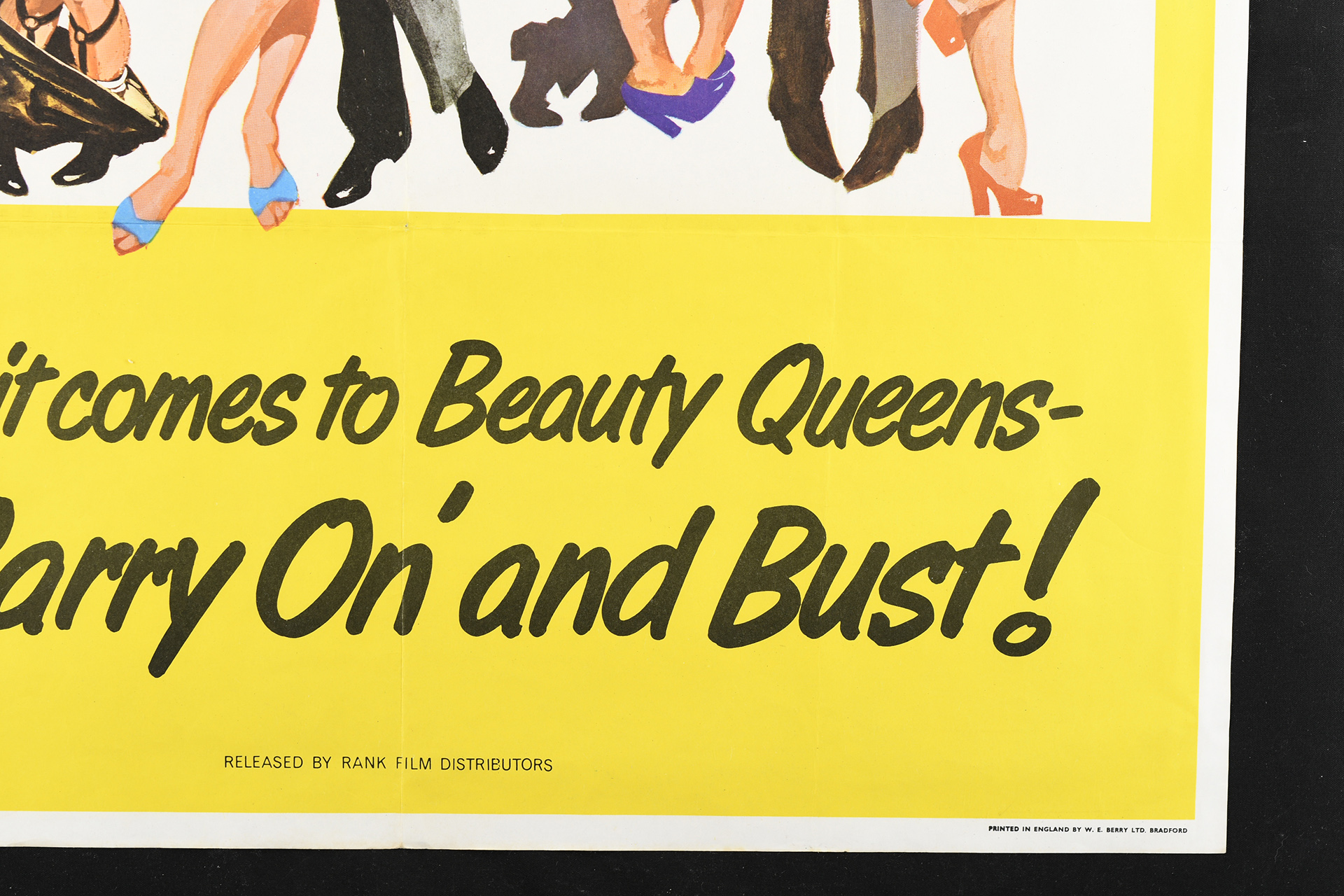 Original cinema poster of "Carry on Girls". Printed in England by W.E. Berry Ltd. Bradford. Condition Good for age. Slight tear top left hand. Folded.